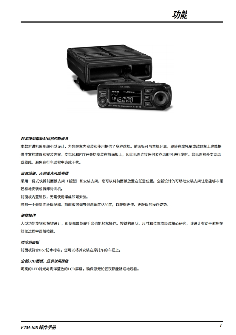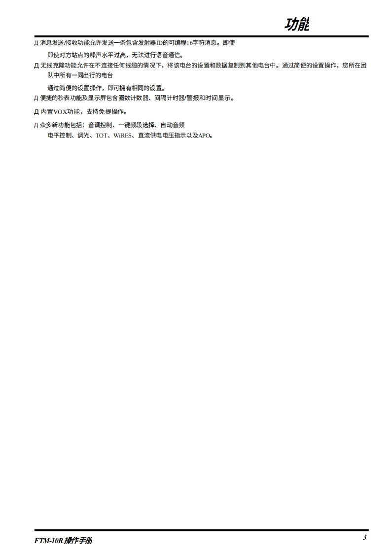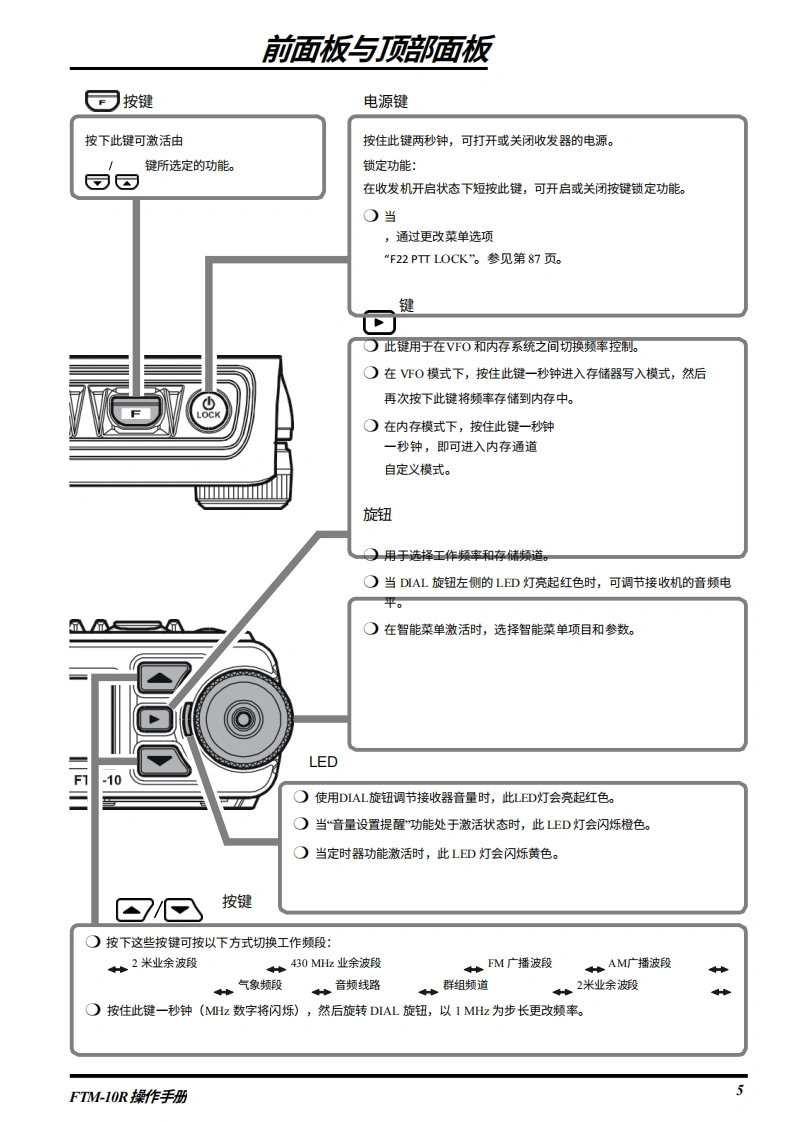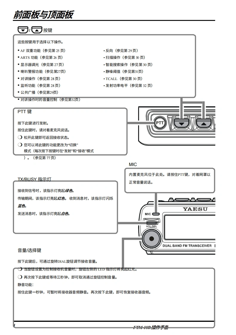 SYAESUVHF/UHF双频段FM收发机FTM-10R操作手册4600阳CENER FTM-10VERTEX STANDARD CO.,LTD.日本东京都目黑区中目黑48-8,却编153864VERTEX STANDARD美国总部美国加利幅尼亚州赛普里斯市沃克街10900号,邮编90830YAESU EUROPE B.V.P.O.Box 75525,1118 ZN Schiphol The NethedandsYAESU UK LTD.英国汉昔那渴彻斯特渴钠尔克礼斯太阳谷商业园12单元,都编$0230LBVERTEX STANDARD HK LTD.香港九龙观塘海滨道139141号海景中心20楼5室VERTEX STANDARD(AUSTRALIA)PTY..LTD澳大利亚维多利亚州诺丁山3168诺漫比路45号14单元,诺漫比商业妇