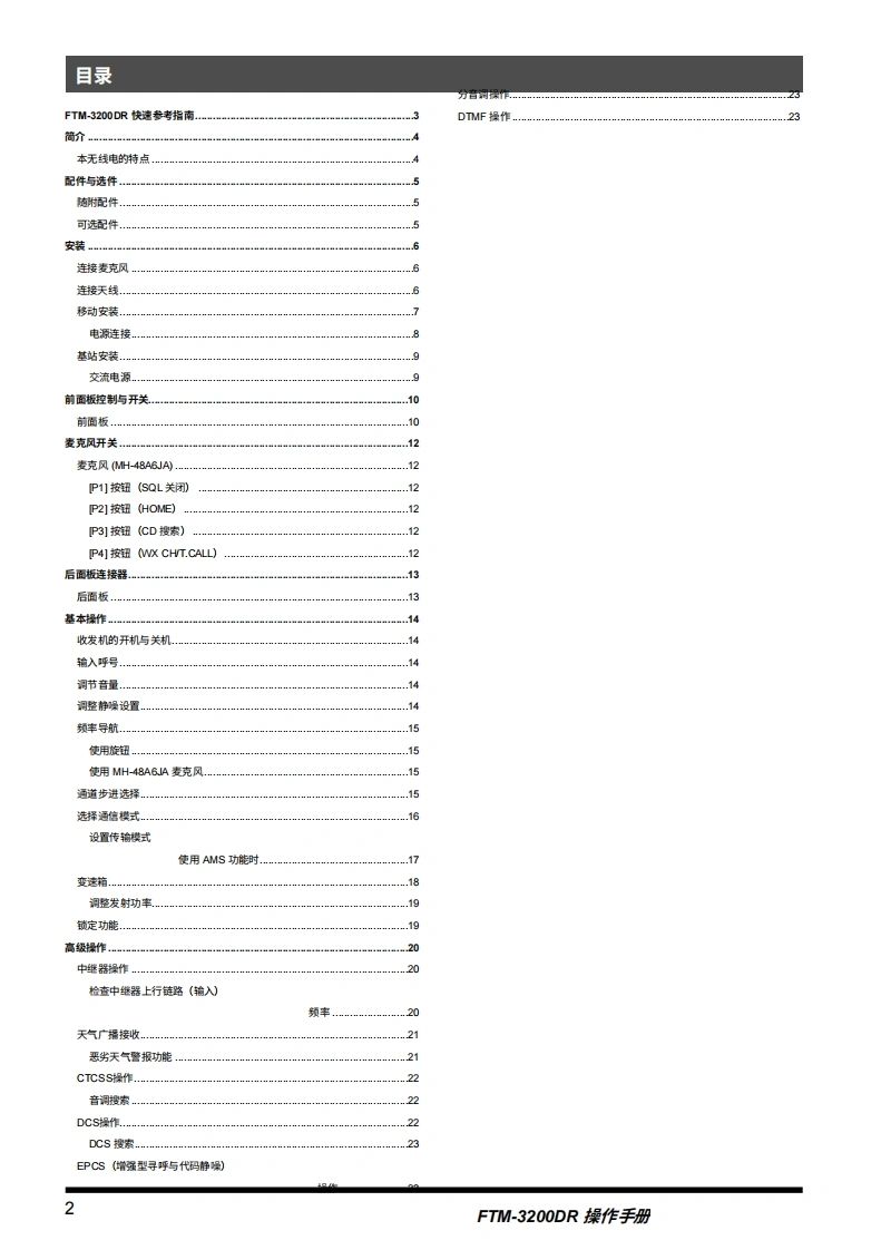 YAESU八重洲FTM-3200DR_操作说明书手册_ENG_EH052N100-中文版找手册网11天前发布关注私信3.09MB44页048YAESU八重洲FTM-3200DR_操作说明书手册_ENG_EH052N100-中文版此内容为付费资源,请付费后查看¥19¥21黄金会员免费钻石会员免费登录购买付费资源 第1页 / 共44页 第2页 / 共44页 第3页 / 共44页 第4页 / 共44页 第5页 / 共44页 第6页 / 共44页 第7页 / 共44页 第8页 / 共44页 第9页 / 共44页 试读已结束,还剩35页,您可下载完整版后进行离线阅读 THE END八重洲 文本预览 YA西SJThe radioFTM-3200DR操作手册VHF数字模拟收发机C4FM/FM○6.5200■■■■■DNDIALn以◎) 查看更多 收起部分 喜欢就支持一下吧收藏