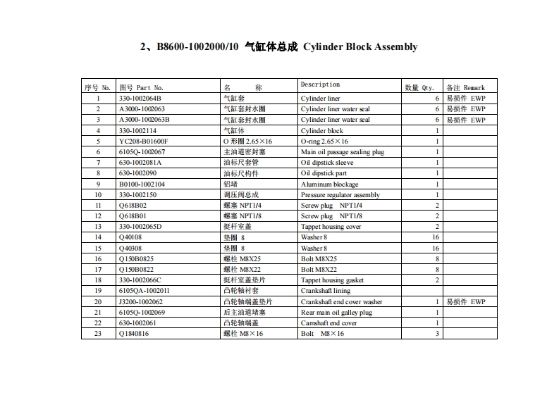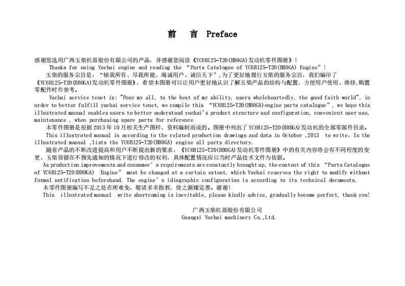 广西玉柴重工YC6B125-T20发动机柴油机零部件图册备件目录手册找手册网12天前发布关注私信1.81MB72页046广西玉柴重工YC6B125-T20发动机柴油机零部件图册备件目录手册此内容为付费资源,请付费后查看¥29¥31黄金会员免费钻石会员免费登录购买付费资源 第1页 / 共72页 第2页 / 共72页 第3页 / 共72页 第4页 / 共72页 第5页 / 共72页 第6页 / 共72页 第7页 / 共72页 第8页 / 共72页 第9页 / 共72页 第10页 / 共72页 试读已结束,还剩62页,您可下载完整版后进行离线阅读 THE END徐工/玉柴/Nifty/TCM 文本预览 YC6B125-T20(BB0GA)柴油机零件图册Parts Catalog of YC6B125-T20 (BBOGA)广西玉柴机器骰份有限公司Guangxi Yuchai machinery Co.,Ltd.2010年10月October,2010 查看更多 收起部分 喜欢就支持一下吧收藏