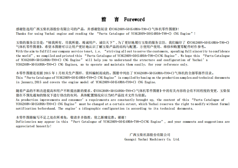 广西玉柴重工Yuchai-YC6G260N-50发动机柴油机零部件图册备件目录手册找手册网12天前发布关注私信2.47MB83页025广西玉柴重工Yuchai-YC6G260N-50发动机柴油机零部件图册备件目录手册此内容为付费资源,请付费后查看¥29¥31黄金会员免费钻石会员免费登录购买付费资源 第1页 / 共83页 第2页 / 共83页 第3页 / 共83页 第4页 / 共83页 第5页 / 共83页 第6页 / 共83页 第7页 / 共83页 第8页 / 共83页 第9页 / 共83页 第10页 / 共83页 试读已结束,还剩73页,您可下载完整版后进行离线阅读 THE END徐工/玉柴/Nifty/TCM 文本预览 YC6G260N-50(G4R0A-T99-C)气体机零件图册Parts Catalogue of YC6G260N-50(G4ROA-T99-C)CNG Engine广西玉柴机器股份有限公司Guangxi Yuchai Machinery Co.,Ltd.2015年1月January,2015 查看更多 收起部分 喜欢就支持一下吧收藏