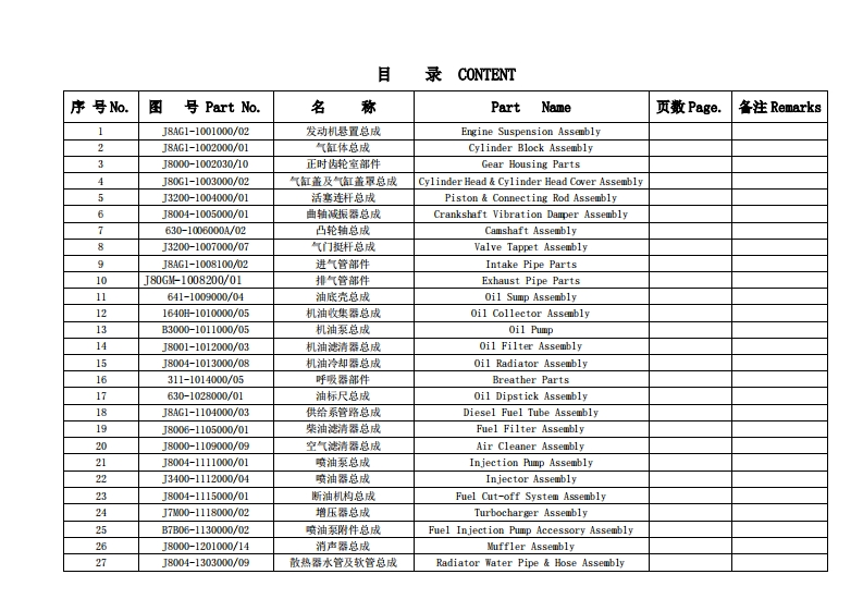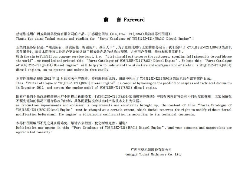 广西玉柴重工Yuchai-YC6J125Z-T21发动机柴油机零部件图册备件目录手册找手册网12天前发布关注私信2.37MB81页041广西玉柴重工Yuchai-YC6J125Z-T21发动机柴油机零部件图册备件目录手册此内容为付费资源,请付费后查看¥29¥31黄金会员免费钻石会员免费登录购买付费资源 第1页 / 共81页 第2页 / 共81页 第3页 / 共81页 第4页 / 共81页 第5页 / 共81页 第6页 / 共81页 第7页 / 共81页 第8页 / 共81页 第9页 / 共81页 第10页 / 共81页 试读已结束,还剩71页,您可下载完整版后进行离线阅读 THE END徐工/玉柴/Nifty/TCM 文本预览 YC6J125Z-T21(U8AG1)柴油机零件图册Parts Catalogue of YC6J125Z-T21(J8AG1)Diesel Engine广西玉柴机器股份有限公司Guangxi Yuchai Machinery Co.,Ltd.2013年1月January 2013 查看更多 收起部分 喜欢就支持一下吧收藏