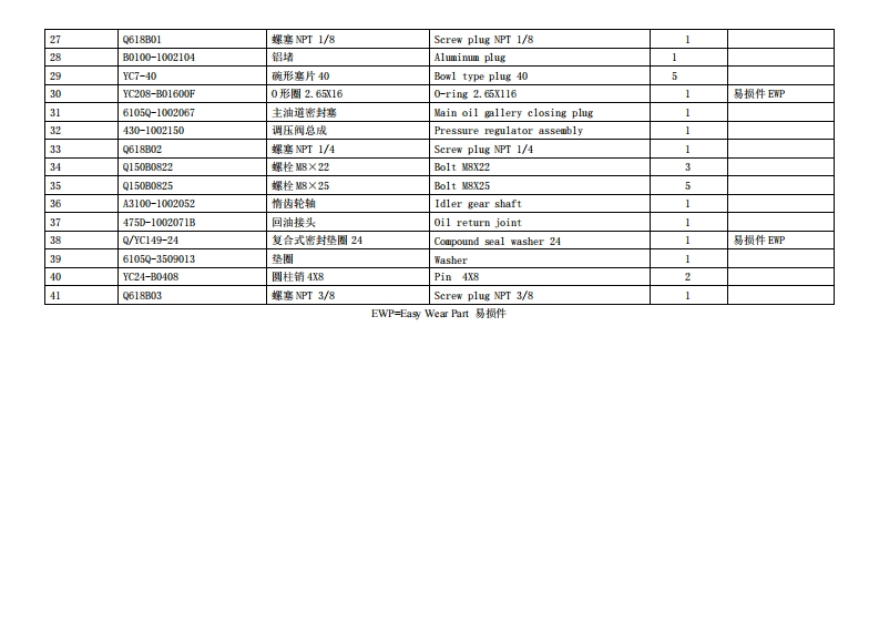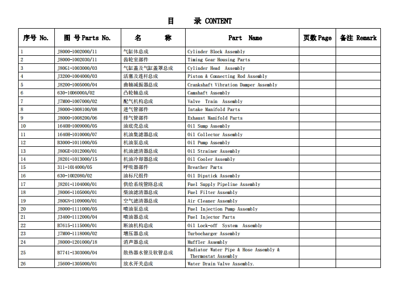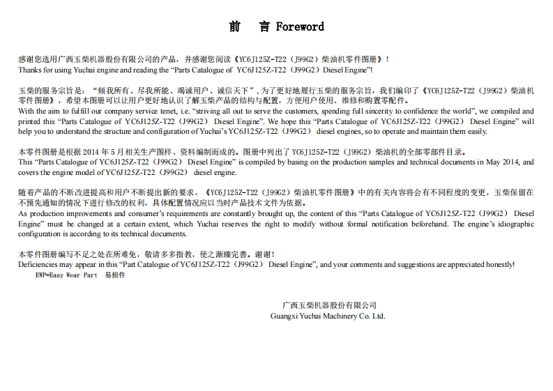 广西玉柴重工Yuchai-YC6J125Z-T22发动机柴油机零部件图册备件目录手册找手册网12天前发布关注私信2.14MB78页050广西玉柴重工Yuchai-YC6J125Z-T22发动机柴油机零部件图册备件目录手册此内容为付费资源,请付费后查看¥29¥31黄金会员免费钻石会员免费登录购买付费资源 第1页 / 共78页 第2页 / 共78页 第3页 / 共78页 第4页 / 共78页 第5页 / 共78页 第6页 / 共78页 第7页 / 共78页 第8页 / 共78页 第9页 / 共78页 第10页 / 共78页 试读已结束,还剩68页,您可下载完整版后进行离线阅读 THE END徐工/玉柴/Nifty/TCM 文本预览 YC6J125Z-T22(J99G2)柴油机零件图册Parts Catalog of YC6J125Z-T22 (J99G2)Diesel Engine广西玉柴机器股份有限公司Guangxi Yuchai Machinery Co.,Ltd.2014年5月May,2014 查看更多 收起部分 喜欢就支持一下吧收藏