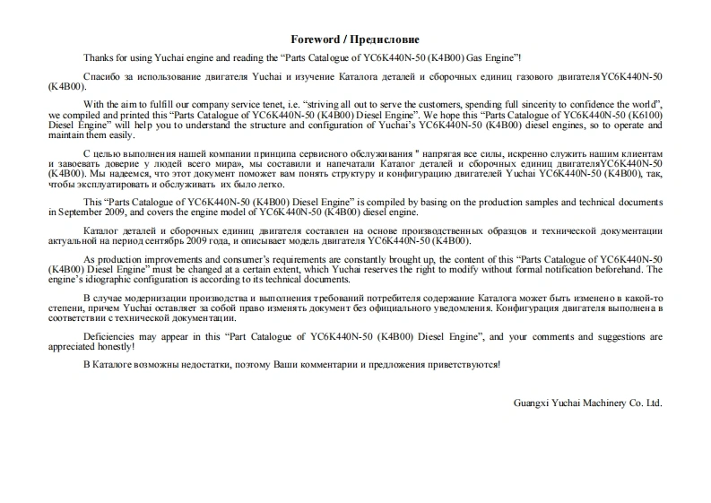 广西玉柴重工Yuchai-YC6K440N-50发动机柴油机零部件图册备件目录手册找手册网11天前发布关注私信2.24MB69页024广西玉柴重工Yuchai-YC6K440N-50发动机柴油机零部件图册备件目录手册此内容为付费资源,请付费后查看¥29¥31黄金会员免费钻石会员免费登录购买付费资源 第1页 / 共69页 第2页 / 共69页 第3页 / 共69页 第4页 / 共69页 第5页 / 共69页 第6页 / 共69页 第7页 / 共69页 第8页 / 共69页 第9页 / 共69页 第10页 / 共69页 试读已结束,还剩59页,您可下载完整版后进行离线阅读 THE END徐工/玉柴/Nifty/TCM 文本预览 YC6K440M-50[K4B00JKaraor eraneii H coopoHbIx eAHHnuBHraTeJb ra30BLIi YC6K440N-50 (K4B00)Parts Catalog of YC6K440N-50 (K4B00)(YC6K13..N-50)Gas EngineGuangxi Yuchai mac hinery Co.Ltd.March,2013 Mapr 2013 查看更多 收起部分 喜欢就支持一下吧收藏