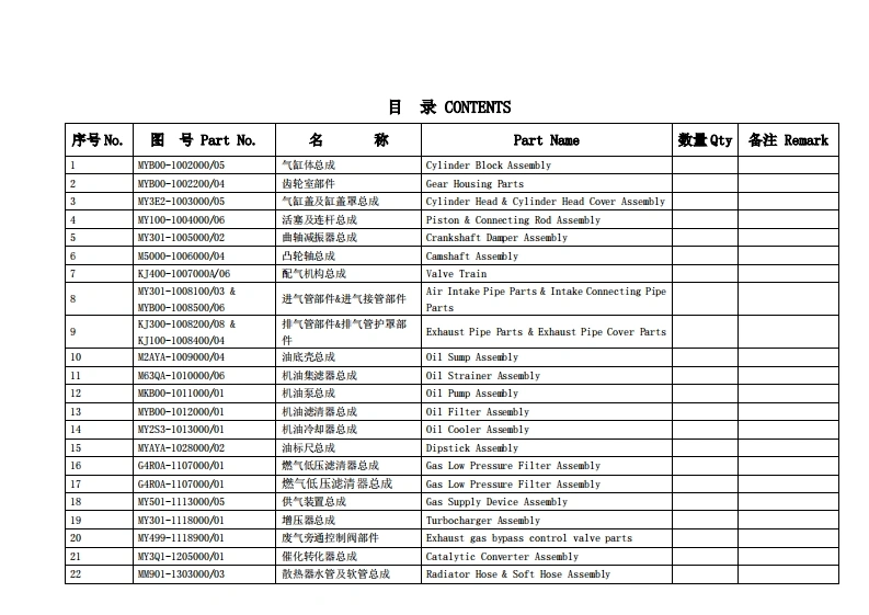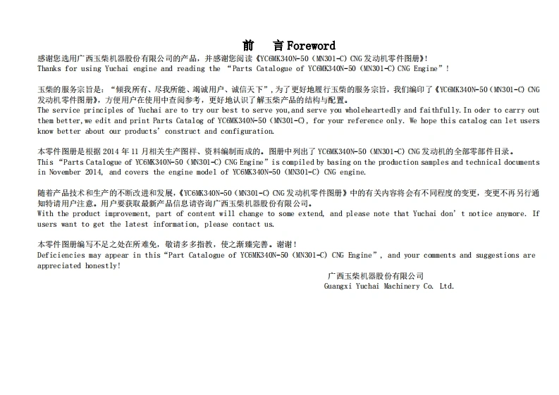 广西玉柴重工Yuchai-YC6MK340N-50发动机柴油机零部件图册备件目录手册找手册网12天前发布关注私信3.77MB81页040广西玉柴重工Yuchai-YC6MK340N-50发动机柴油机零部件图册备件目录手册此内容为付费资源,请付费后查看¥29¥31黄金会员免费钻石会员免费登录购买付费资源 第1页 / 共81页 第2页 / 共81页 第3页 / 共81页 第4页 / 共81页 第5页 / 共81页 第6页 / 共81页 第7页 / 共81页 第8页 / 共81页 第9页 / 共81页 第10页 / 共81页 试读已结束,还剩71页,您可下载完整版后进行离线阅读 THE END徐工/玉柴/Nifty/TCM 文本预览 YC6MK340N-50(N301-C)CNG发动机零件图册Parts Catalog of YC6MK340N-50 (MN301-C)CNG Engine广西玉桌机帮股份有限公司Guangxi Yuchai machinery Co.Ltd.2014年12月December,2014 查看更多 收起部分 喜欢就支持一下吧收藏