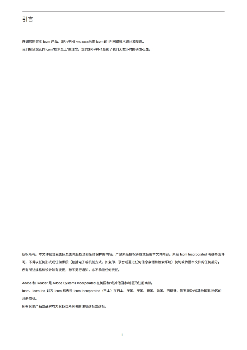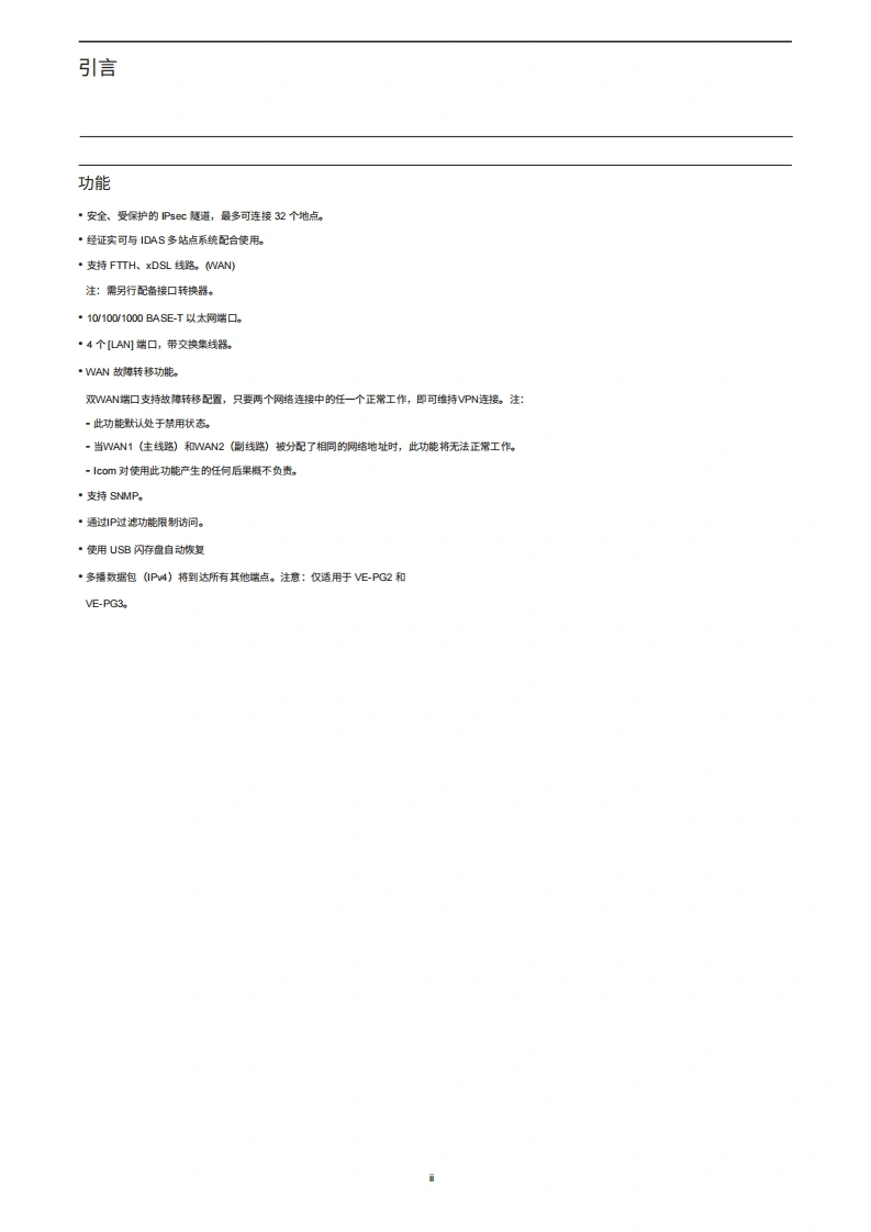 IPRadio_SR-VPN1_InstructionManual操作说明书手册20260331中文版找手册网11天前发布关注私信5.62MB149页047IPRadio_SR-VPN1_InstructionManual操作说明书手册20260331中文版此内容为付费资源,请付费后查看¥19¥21黄金会员免费钻石会员免费登录购买付费资源 第1页 / 共149页 第2页 / 共149页 第3页 / 共149页 第4页 / 共149页 第5页 / 共149页 第6页 / 共149页 第7页 / 共149页 第8页 / 共149页 第9页 / 共149页 第10页 / 共149页 试读已结束,还剩139页,您可下载完整版后进行离线阅读 THE END艾可慕 文本预览 ICOM使用说明书VPN路由器简介SR-VPN11使用SR-VPN1之前2关于互联网连接3 IPsec向导4其他基本功能5关于设置屏幕6维护7供您参考。。。。。。Icom Inc. 查看更多 收起部分 喜欢就支持一下吧收藏