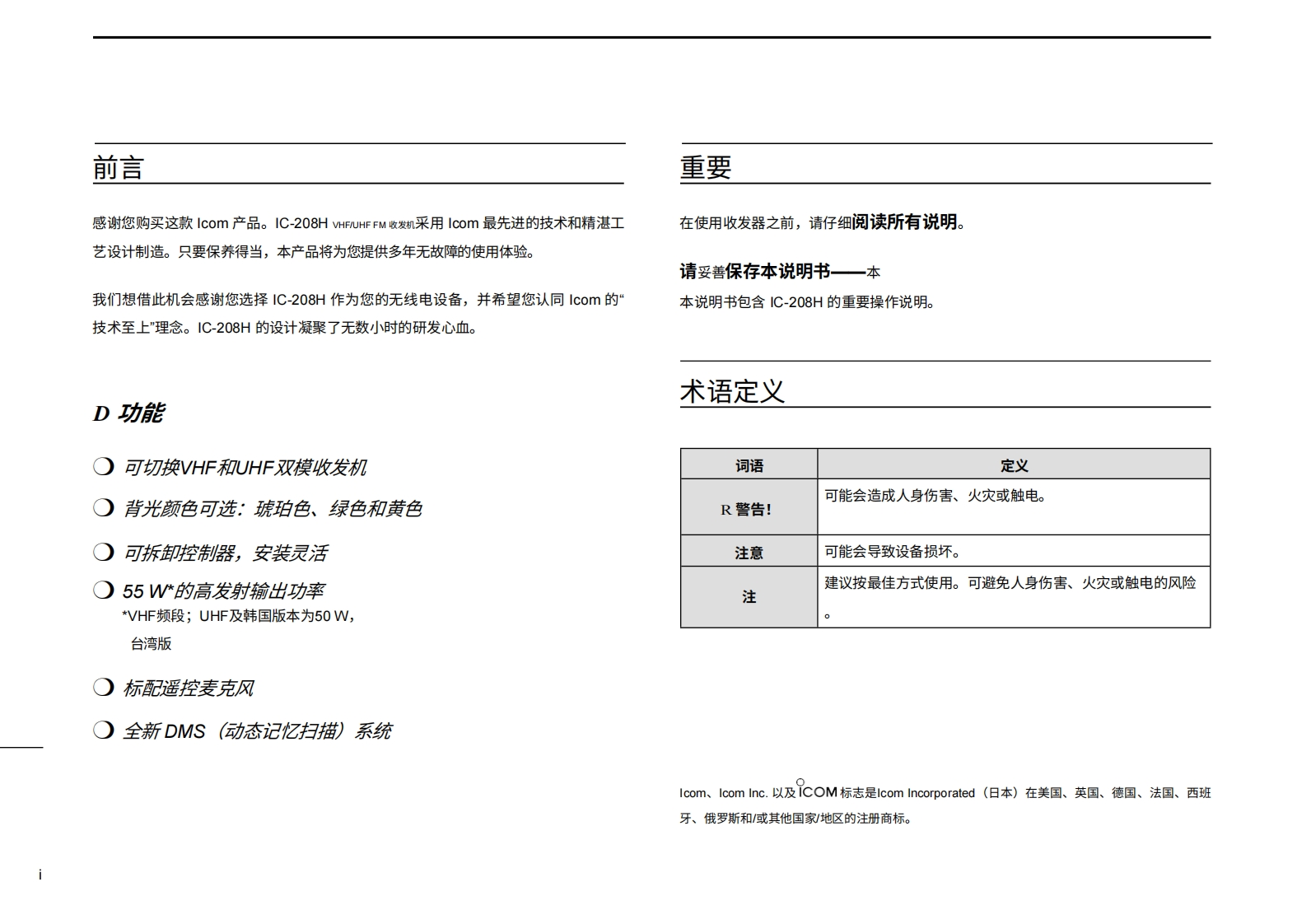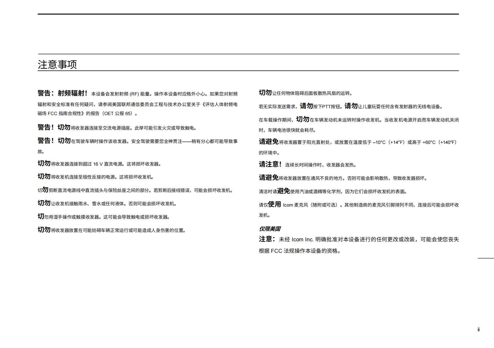 ICOM艾可慕IC-208H_user操作说明书手册20260331中文版找手册网11天前发布关注私信6.59MB97页038ICOM艾可慕IC-208H_user操作说明书手册20260331中文版此内容为付费资源,请付费后查看¥19¥21黄金会员免费钻石会员免费登录购买付费资源 第1页 / 共97页 第2页 / 共97页 第3页 / 共97页 第4页 / 共97页 第5页 / 共97页 第6页 / 共97页 第7页 / 共97页 第8页 / 共97页 第9页 / 共97页 第10页 / 共97页 试读已结束,还剩87页,您可下载完整版后进行离线阅读 THE END艾可慕 文本预览 COM使用说明书VHF/UHF FM收发机i208H玉剧Downloaded byRadioAmateur.EU469盟本设备符合FCC规则第15部分的规定。其使用须遵守以下两个条件:(1)本设备不得造成有害干扰;(②)本设备必须接受任何接收到的干扰,包括可能导致意外运行的干扰。Icom Inc. 查看更多 收起部分 喜欢就支持一下吧收藏