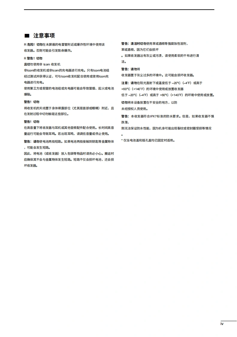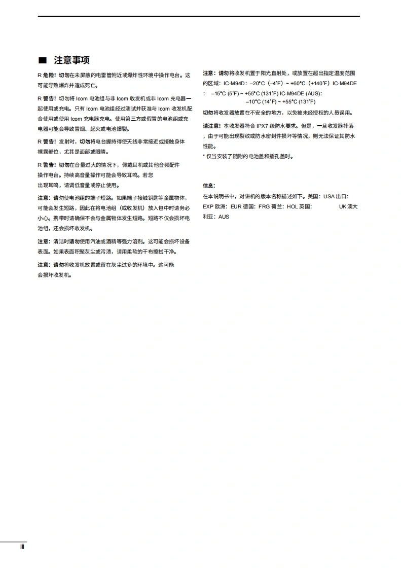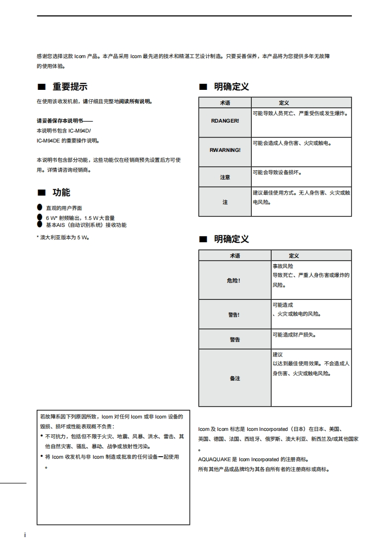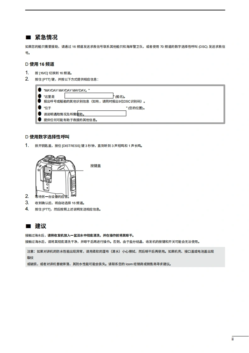 艾可慕IC-M94D-Instruction-manual操作说明书手册20260331中文版找手册网11天前发布关注私信4.23MB90页049艾可慕IC-M94D-Instruction-manual操作说明书手册20260331中文版此内容为付费资源,请付费后查看¥19¥21黄金会员免费钻石会员免费登录购买付费资源 第1页 / 共90页 第2页 / 共90页 第3页 / 共90页 第4页 / 共90页 第5页 / 共90页 第6页 / 共90页 第7页 / 共90页 第8页 / 共90页 第9页 / 共90页 第10页 / 共90页 试读已结束,还剩80页,您可下载完整版后进行离线阅读 THE END艾可慕 文本预览 COM使用说明书VHF船用收发机IM94DM94DECOMMM5T:000000只太里★m16CALLINGDTRS OR UNREADIC-M94DMENU本设备符合美国联邦通信委员会(FCC)规则第15部分的规定。使用本设备须6/0确保不会造成有害干扰。Icom Inc. 查看更多 收起部分 喜欢就支持一下吧收藏