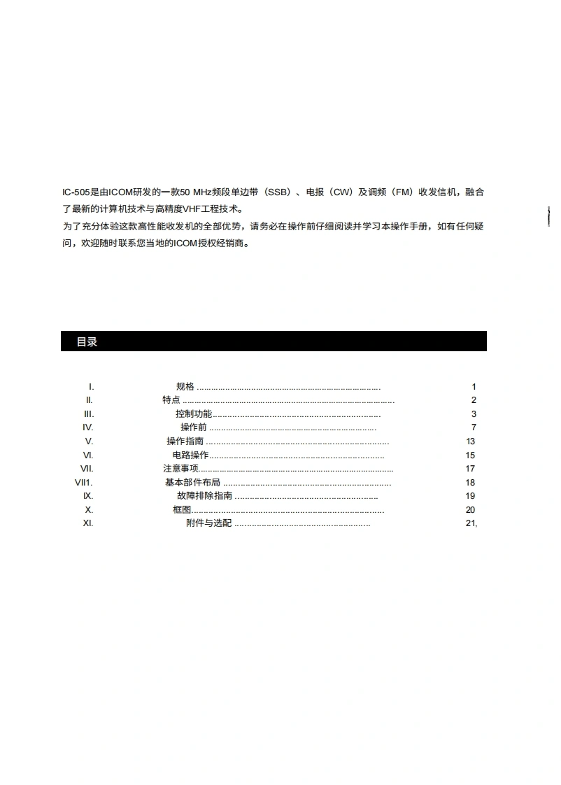 艾可慕ic505_使用说明书手册20260331中文版找手册网11天前发布关注私信7.58MB24页042艾可慕ic505_使用说明书手册20260331中文版此内容为付费资源,请付费后查看¥19¥21黄金会员免费钻石会员免费登录购买付费资源 第1页 / 共24页 第2页 / 共24页 第3页 / 共24页 第4页 / 共24页 第5页 / 共24页 第6页 / 共24页 第7页 / 共24页 第8页 / 共24页 第9页 / 共24页 第10页 / 共24页 试读已结束,还剩14页,您可下载完整版后进行离线阅读 THE END艾可慕 文本预览 IE-5圈550 MHz SSB CW(FM)TRANSCEIVER操作手册ICOM 查看更多 收起部分 喜欢就支持一下吧收藏