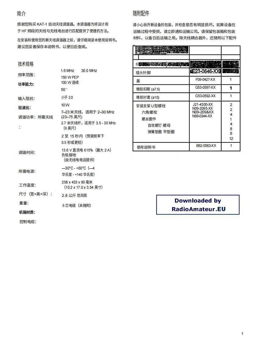 KENWOOD建武Kenwood_KAT-1_user操作说明书手册-中文版找手册网11天前发布关注私信1.74MB10页047KENWOOD建武Kenwood_KAT-1_user操作说明书手册-中文版此内容为付费资源,请付费后查看¥19¥21黄金会员免费钻石会员免费登录购买付费资源 第1页 / 共10页 第2页 / 共10页 第3页 / 共10页 第4页 / 共10页 第5页 / 共10页 第6页 / 共10页 第7页 / 共10页 第8页 / 共10页 第9页 / 共10页 第10页 / 共10页 已完成全部阅读,共10页 THE END建武 文本预览 KAT-1自动天线调谐器使用说明书天线自动调谐器KENWOOD用户手册自动天线调谐器使用说明书KENWOOD GORPORATIONDownloaded byRadioAmateur.EU 查看更多 收起部分 喜欢就支持一下吧收藏