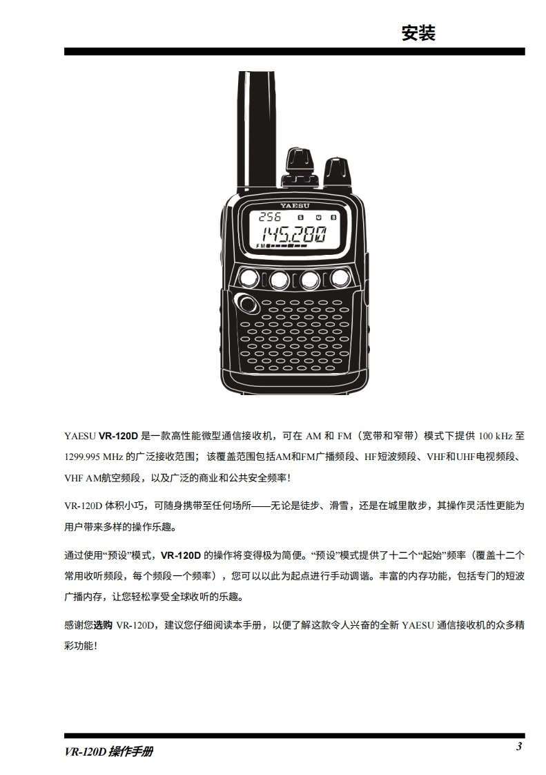 YAESU通信接收器VR-120D操作手册YAESU256600VERTEX STANDARD CO.,LTD.15.280日本东京都目黑区中目黑4-8-8,邮编153-8644F■■VERTEX STANDARD美国总部美国加利福尼亚州塞里托斯市爱德华兹路17210号,邮编90703国际事业部美国佛罗里达州迈阿密市西北52街8350号201室,邮编33166YAESU EUROPE B.V.P.O.Box 75525,1118 ZN Schiphol,The NetherlandsYAESU UK LTD.英国汉普郡温彻斯特温纳尔克洛斯太阳谷商业园12单元,邮编:SO230LBVERTEX STANDARD HK LTD香港九龙观塘海滨道139141号海景中心20楼5室