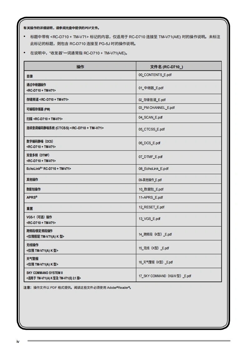 RC-D710KENWOODGOOMNBI同同同回回回同。控制面板使用说明书控制面板使用说明书控制面板使用说明书☐控制面板使用说明书本说明书仅介绍基本操作。有关操作的详细说明,请参阅光盘中提供的PD「文件。本使用说明书仅说明基本功能。有关其他操作的详细说明,请参阅光盘中提供的PDF文件。本说明书仅介绍基本操作。如需了解详细的操作说明,请参阅光盘中随附的PDF文件本使用说明书仅说明基本操作。各功能的详细说明请参阅附带CD-ROM中的使用说明书(PDF格式)。Kenwood Corporation©B62-2003-20W0908070605040302