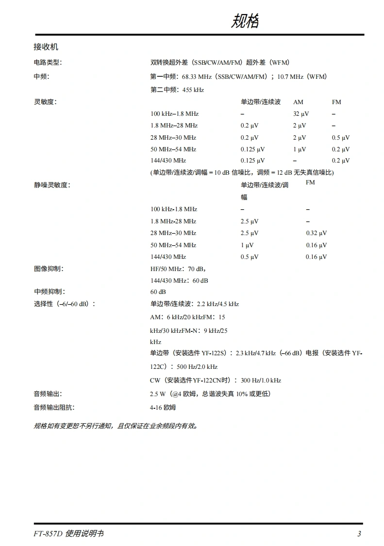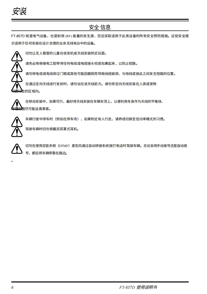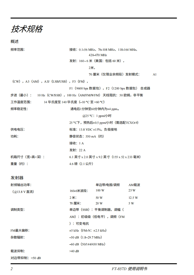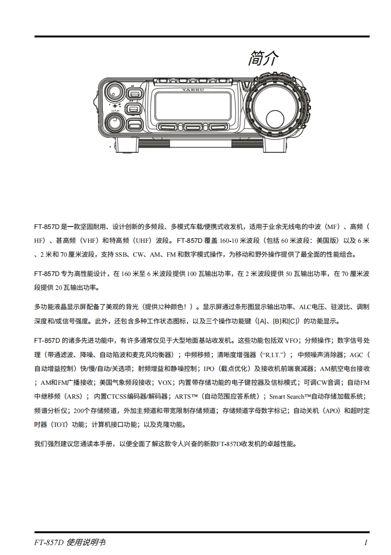 SYAESUFT-857DHF/VHF/UHFULTRA-COMPACT TRANSCEIVER操作手册0000VERTEX STANDARD CO.,LTD.日本东京都目黑区中目黑4-88,邮编153-8644VERTEX STANDARD美国总部关国加利福尼亚州赛普里斯市沃克街10900号,邮编90630YAESU EUROPE B.V.P.O.Box 75525,1118 ZN Schiphol,The NetherlandsYAESU UK LTD】英国汉普郡温彻斯特温纳尔克洛斯太阳谷商业园12单元,邮编:S0230LBVERTEX STANDARD HK LTD.香港九龙观塘海滨道139141号海景中心20楼5室