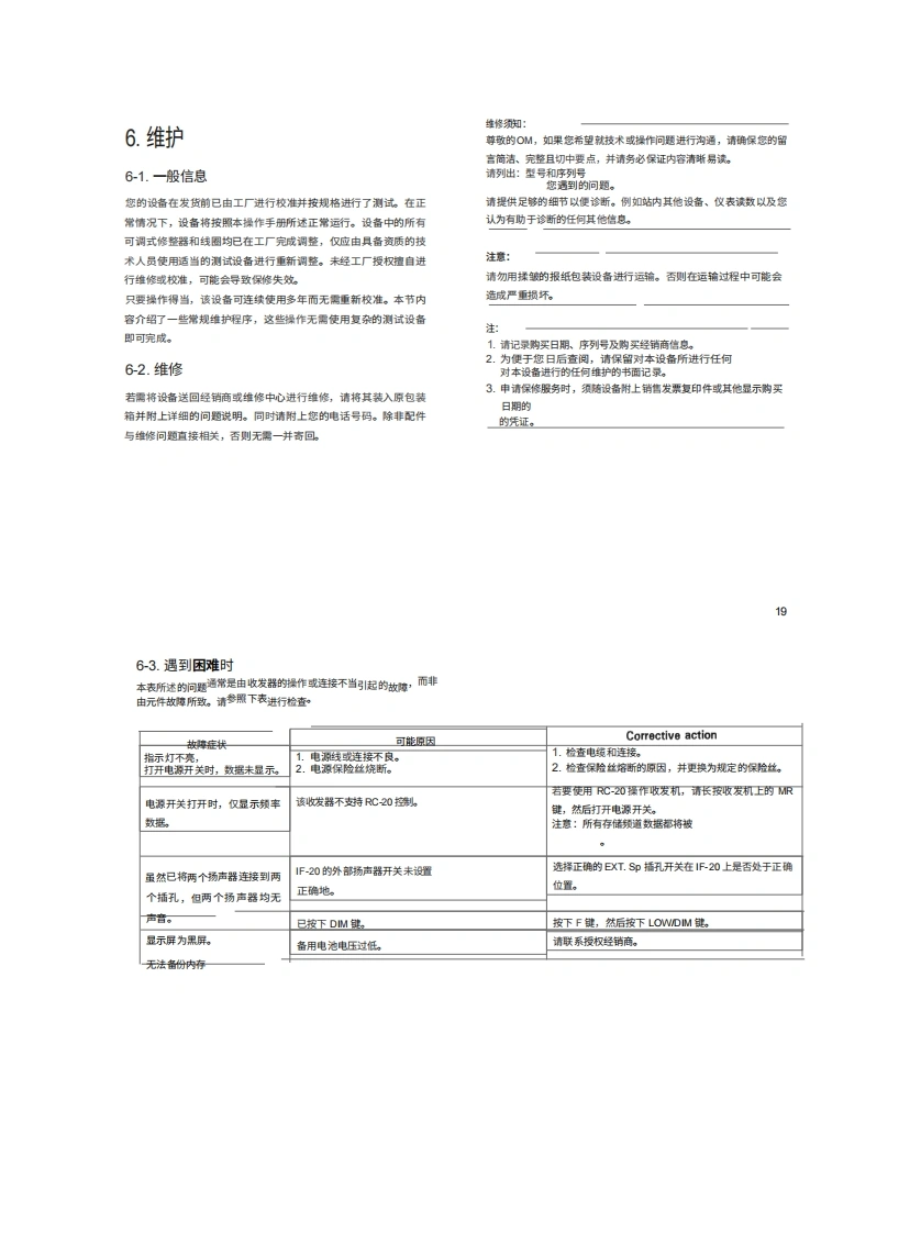 KENWOOD建武Kenwood_RC20操作说明书手册-中文版找手册网10天前发布关注私信2.11MB10页027KENWOOD建武Kenwood_RC20操作说明书手册-中文版此内容为付费资源,请付费后查看¥19¥21黄金会员免费钻石会员免费登录购买付费资源 第1页 / 共10页 第2页 / 共10页 第3页 / 共10页 第4页 / 共10页 第5页 / 共10页 第6页 / 共10页 第7页 / 共10页 第8页 / 共10页 第9页 / 共10页 第10页 / 共10页 已完成全部阅读,共10页 THE END建武 文本预览 RC-20控KENWOO D使用说明书KENWOOD CORPORATION日本印刚B50-8284-08(K,M,M9012111098765432189121110987654感谢您购买这歉新型遥控程1.¥?iési22操作前重要提示:在开始使用遥控器之前,请仔细阅读本说明书,为防止触纯、火灾及其他伤害,请注意以下事项请妥善保存本说明书。为避免触电风险,切勿在任何情况下打开本设备。目录1.使用前须知。22规格与配件33安装说明请勿将本设备放置在阳光直射处或靠近取暖设备。4操作操作控制.操作。.11收发器控制..12直接键ǜ输入13双工操作.…155.RC-20原理图..17维护.19遇到困难时20 查看更多 收起部分 喜欢就支持一下吧收藏