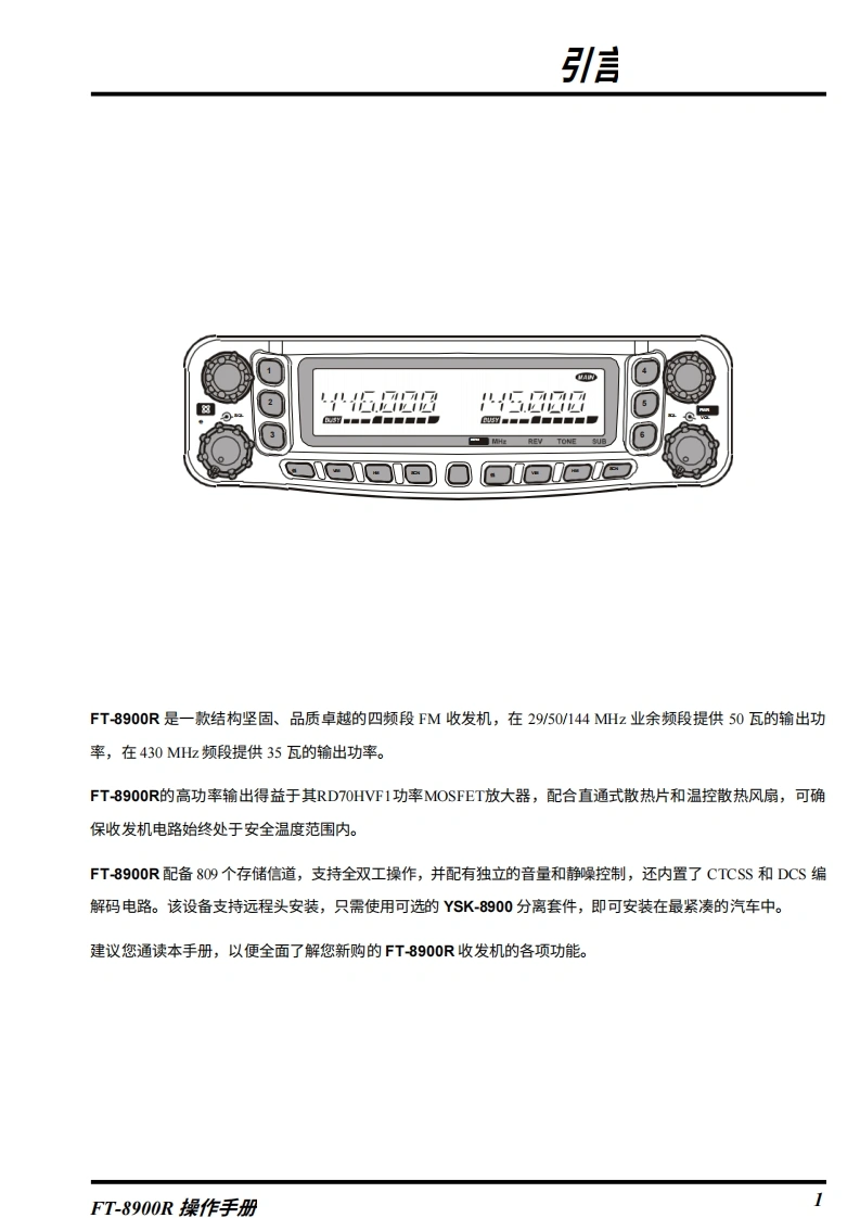 YAESU四频段FM收发机FT-8900R操作手册oeooooo O0o。0。oD060G8中中gVERTEX STANDARD CO.,LTD.日本东京都目黑区中目黑4-8-8,邮编153-8644VERTEX STANDARD美国总部美国加利福尼亚州赛普里斯市沃克街10900号,邮编90630国际事业部美国佛罗里达州迈阿密市西北52街8350号201室,邮编33166YAESU EUROPE B.V.P.O.Box 75525,1118 ZN Schiphol,The NetherlandsYAESU UK LTD.英国汉普郡温彻斯特温纳尔克洛斯太阳谷商业园12单元,邮编:S0230LBVERTEX STANDARD HK LTD.香港九龙观塘海滨道139141号海景中心20楼5室