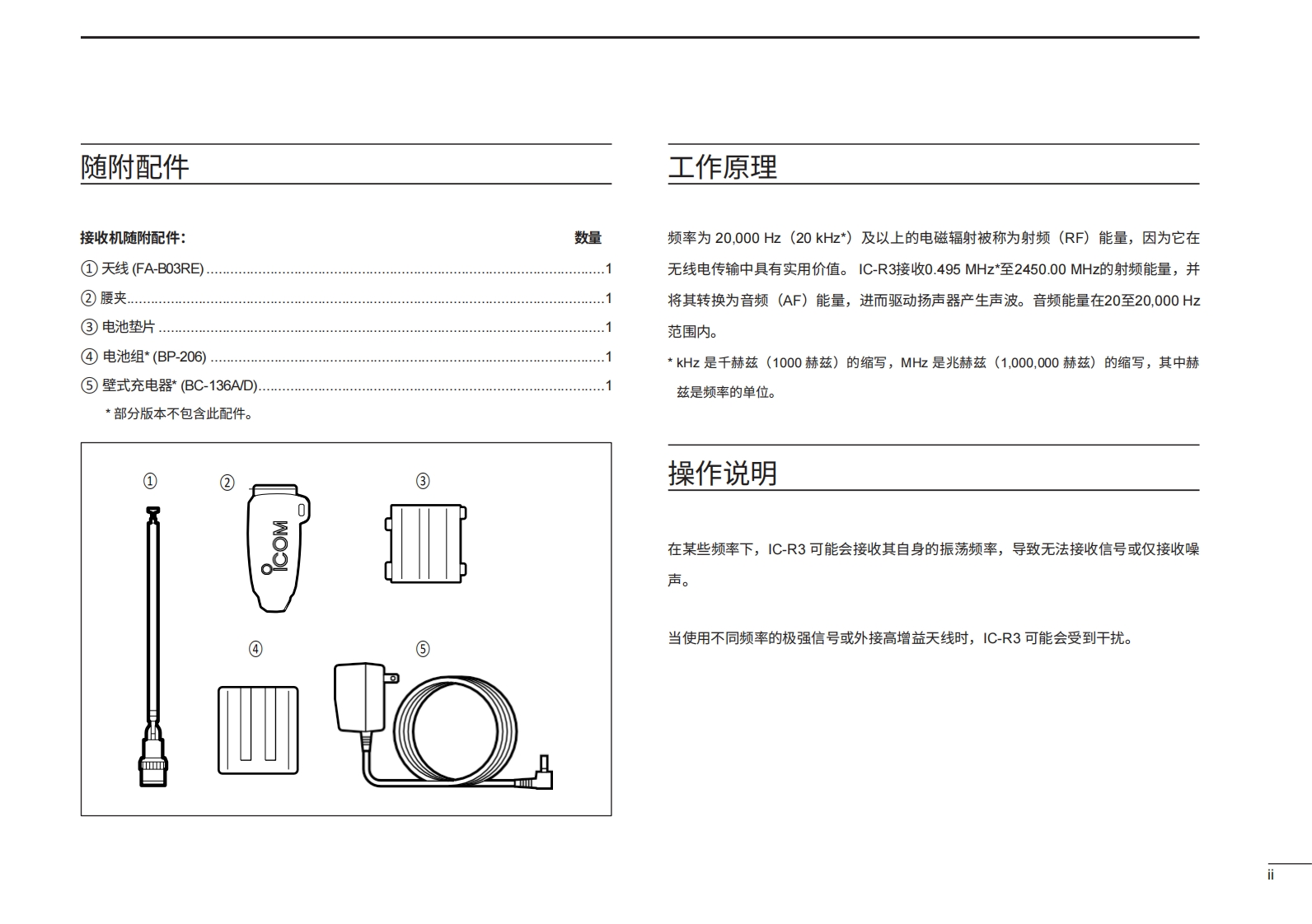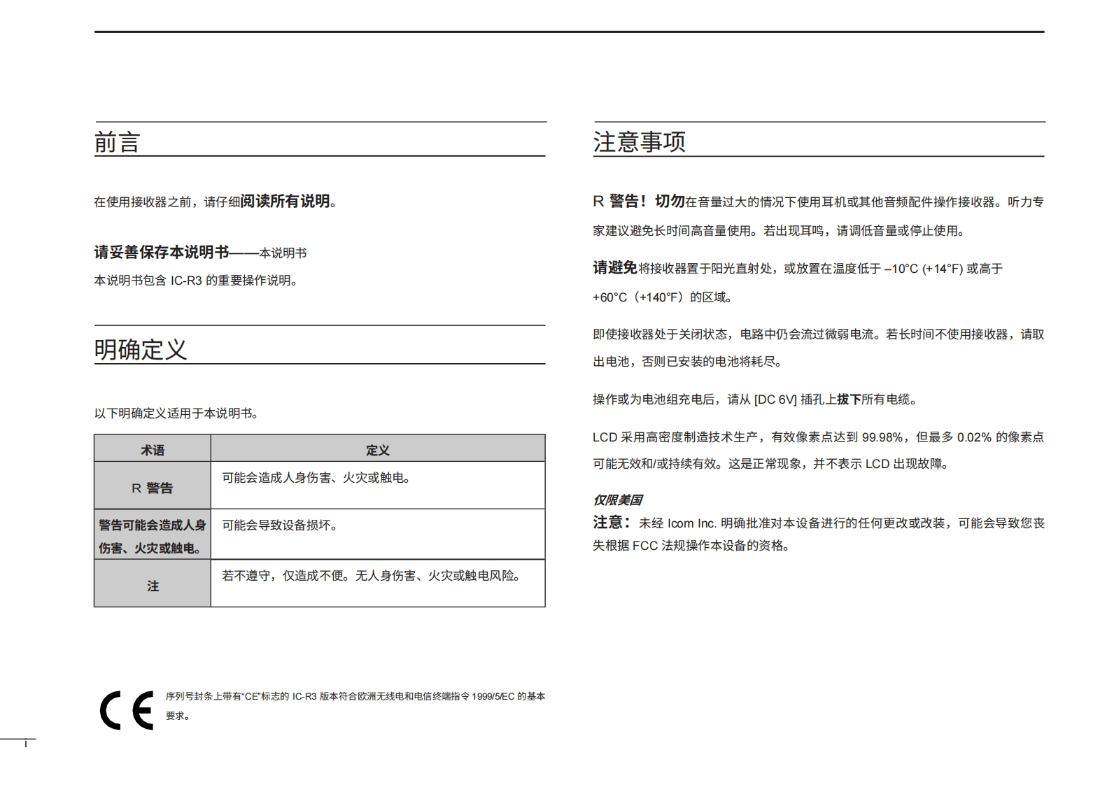 ICOM艾可慕IC-R3_user操作说明书手册20260331-中文版找手册网11天前发布关注私信3.79MB71页031ICOM艾可慕IC-R3_user操作说明书手册20260331-中文版此内容为付费资源,请付费后查看¥19¥21黄金会员免费钻石会员免费登录购买付费资源 第1页 / 共71页 第2页 / 共71页 第3页 / 共71页 第4页 / 共71页 第5页 / 共71页 第6页 / 共71页 第7页 / 共71页 第8页 / 共71页 第9页 / 共71页 第10页 / 共71页 试读已结束,还剩61页,您可下载完整版后进行离线阅读 THE END艾可慕 文本预览 COM使用说明书通信接收机iR3TS50本设备符合FCC规则第15部分的规定。其使用须遵守以下两项条件:(①)本设备不得造成有害干扰;②)本设备必须接受所接收到的任何干扰,包括可能导致意外运行的千扰。由*业余无线电目录*下载www.hamdirectory.infoIcom Inc. 查看更多 收起部分 喜欢就支持一下吧收藏