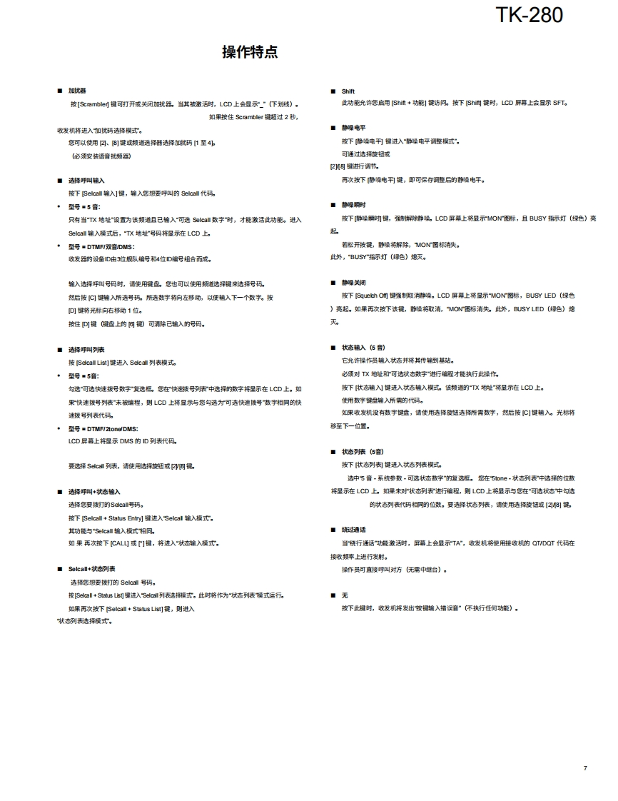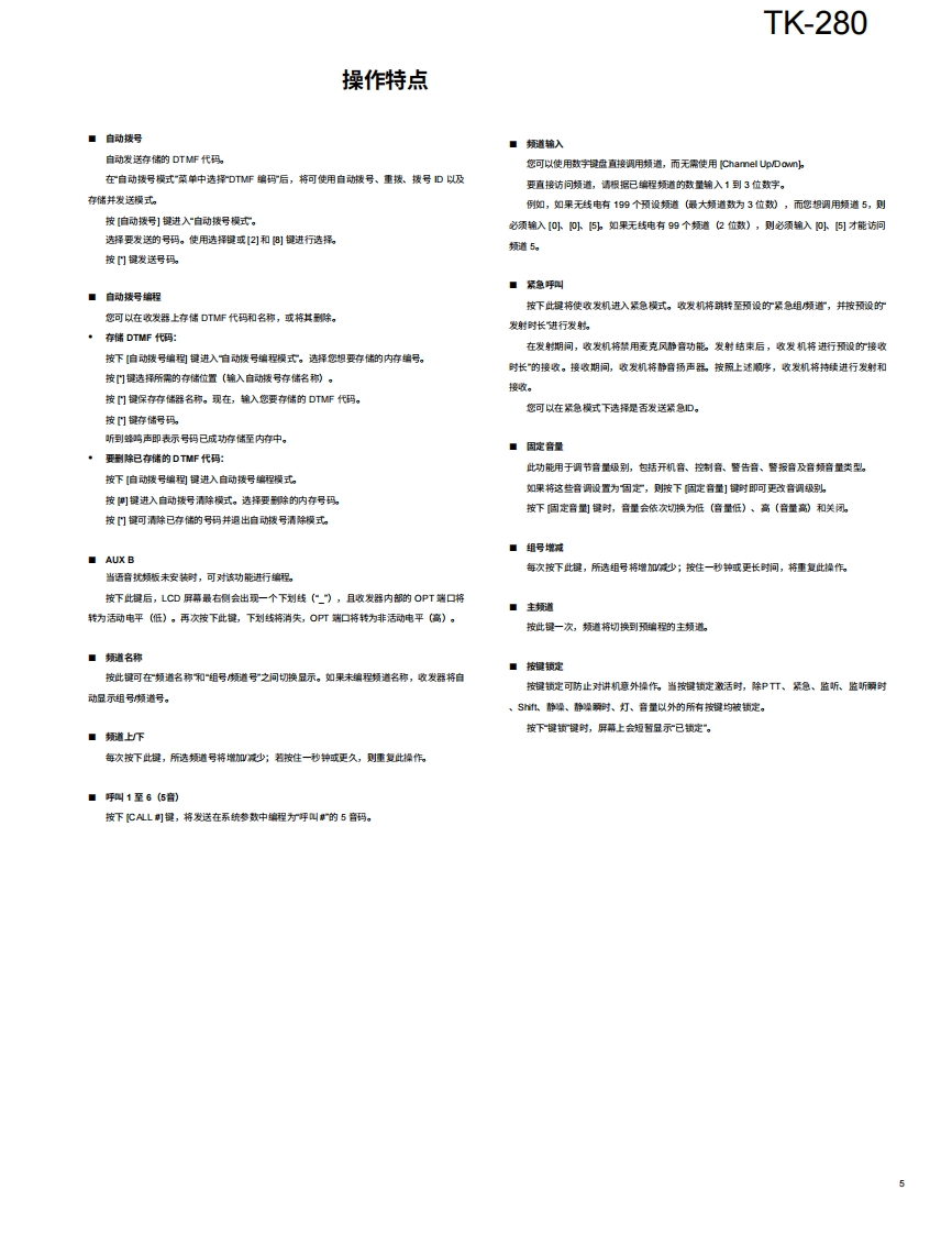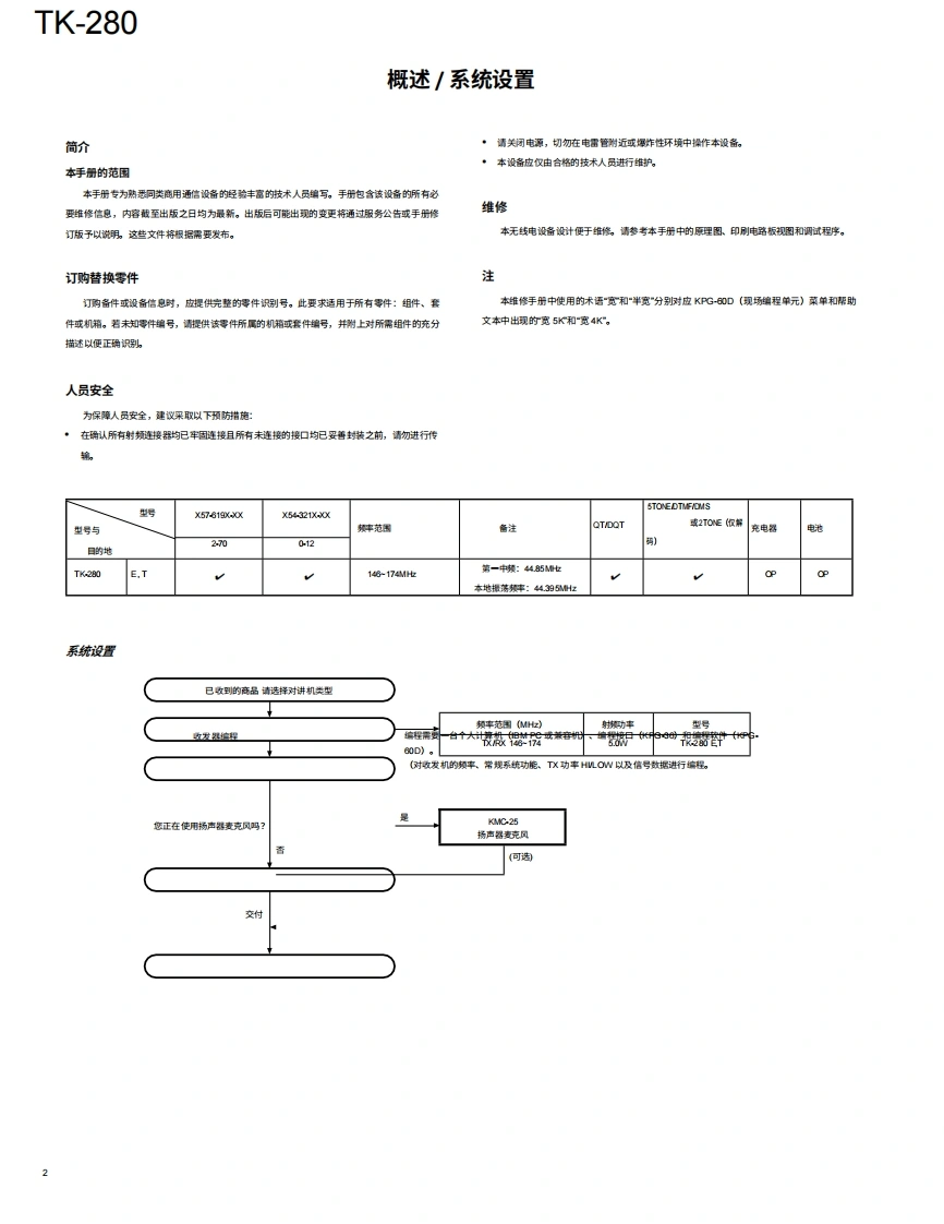 HFFM收发机KENWOODTK-280服务手册@2000-4日本印刚B51-8521-00(3)553电子版目录螺收天线T90-0680-05概述.…T(T900635.15:E系统设置.…旋钮(但NC)(K29操作功能3523203)重新对准电路描述……20(VOL)(K295231.00半导体数据元件说明…。32零件清单.33平移电位器总成62053504分解图40坏e10s19包转调整终端功能52旋钮PTT等)(体0铺PCB现图K295157-0316显示单元0X54-3210-12.收发器单元K57-619270母KENOOD原理图..65和图69en电平图713 n选项72nPac规格】封底a注意使用外部电源连接器时,请确保最终模块的保护电压不超过。图片为带KRA14的E型