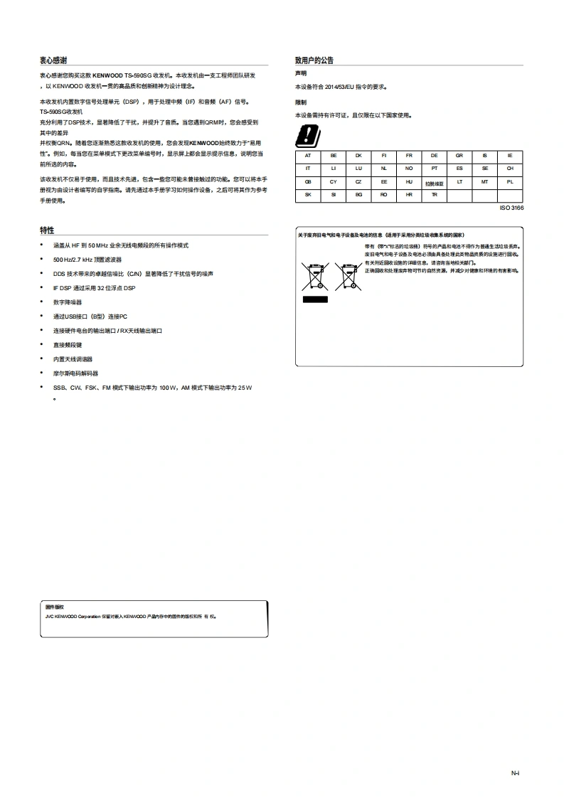 KENWOOD建武TS-590SG_使用说明书手册_NL-中文版找手册网11天前发布关注私信8.60MB106页026KENWOOD建武TS-590SG_使用说明书手册_NL-中文版此内容为付费资源,请付费后查看¥19¥21黄金会员免费钻石会员免费登录购买付费资源 第1页 / 共106页 第2页 / 共106页 第3页 / 共106页 第4页 / 共106页 第5页 / 共106页 第6页 / 共106页 第7页 / 共106页 第8页 / 共106页 第9页 / 共106页 第10页 / 共106页 试读已结束,还剩96页,您可下载完整版后进行离线阅读 THE END建武 文本预览 KENWOODHF5OMHz收发机TS-590SG使用说明书TS-590雪m尚--3-4U58AT25000HrE-50183.571014四18☐222O-MLN OMR网FINEJVCKENWOOD Corporation5A018520月器 查看更多 收起部分 喜欢就支持一下吧收藏