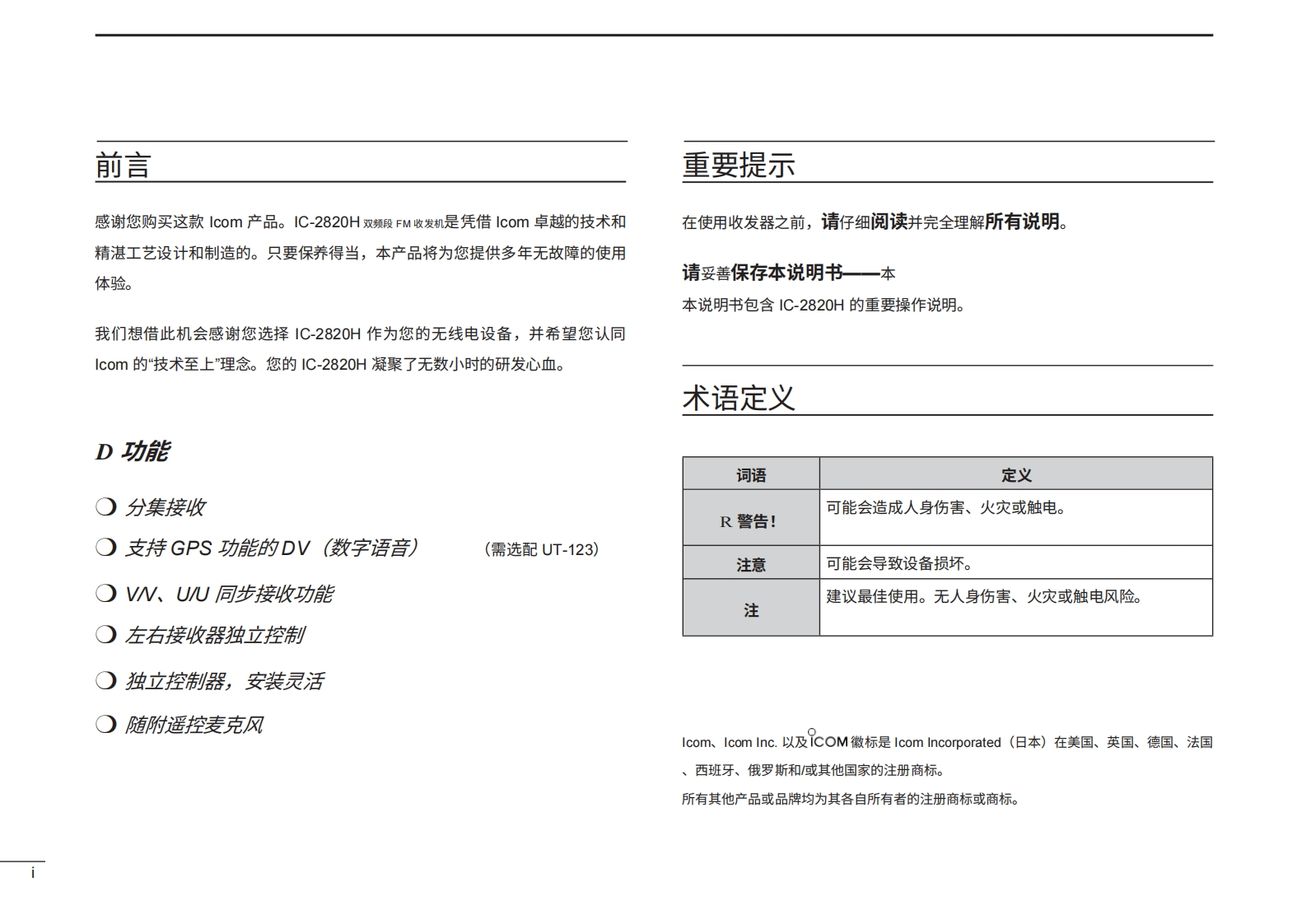 艾可慕IC-2820Manual操作说明书手册20260331-中文版找手册网11天前发布关注私信6.97MB176页038艾可慕IC-2820Manual操作说明书手册20260331-中文版此内容为付费资源,请付费后查看¥19¥21黄金会员免费钻石会员免费登录购买付费资源 第1页 / 共176页 第2页 / 共176页 第3页 / 共176页 第4页 / 共176页 第5页 / 共176页 第6页 / 共176页 第7页 / 共176页 第8页 / 共176页 第9页 / 共176页 第10页 / 共176页 试读已结束,还剩166页,您可下载完整版后进行离线阅读 THE END艾可慕 文本预览 iCOM使用说明书双频段调频收发机i2820H468204u3550本设备符合FCC规则第15部分的规定。其使用须遵守以下两个条件:(1)本设备不得造成有害干扰;(②)本设备必须接受任何接收到的干扰,包括可能导致意外运行的干扰。Icom Inc. 查看更多 收起部分 喜欢就支持一下吧收藏