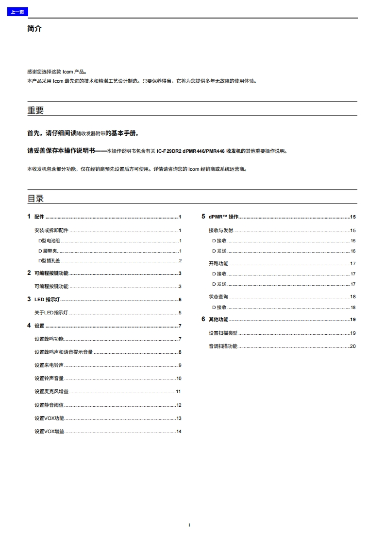 艾可慕IC-F29DR2_Manual操作说明书手册20260331-中文版找手册网10天前发布关注私信2.32MB23页028艾可慕IC-F29DR2_Manual操作说明书手册20260331-中文版此内容为付费资源,请付费后查看¥19¥21黄金会员免费钻石会员免费登录购买付费资源 第1页 / 共23页 第2页 / 共23页 第3页 / 共23页 第4页 / 共23页 第5页 / 共23页 第6页 / 共23页 第7页 / 共23页 第8页 / 共23页 第9页 / 共23页 第10页 / 共23页 试读已结束,还剩13页,您可下载完整版后进行离线阅读 THE END艾可慕 文本预览 SCOM操作说明嗯dPMR446/PMR446收发器IG-F29DR2COMMICdP丽lcom Inc. 查看更多 收起部分 喜欢就支持一下吧收藏