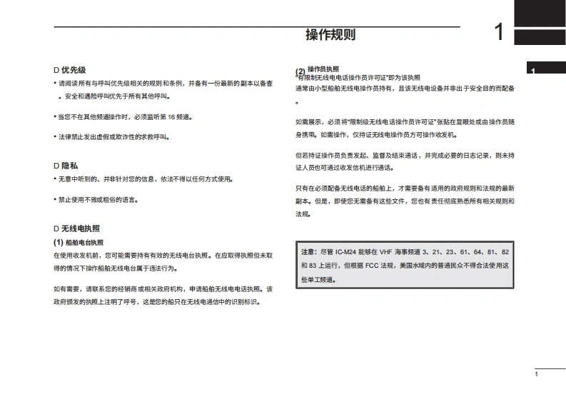 艾可慕IC-M24_Manual操作说明书手册20260331-中文版找手册网10天前发布关注私信3.37MB46页022艾可慕IC-M24_Manual操作说明书手册20260331-中文版此内容为付费资源,请付费后查看¥19¥21黄金会员免费钻石会员免费登录购买付费资源 第1页 / 共46页 第2页 / 共46页 第3页 / 共46页 第4页 / 共46页 第5页 / 共46页 第6页 / 共46页 第7页 / 共46页 第8页 / 共46页 第9页 / 共46页 第10页 / 共46页 试读已结束,还剩36页,您可下载完整版后进行离线阅读 THE END艾可慕 文本预览 COM使用说明书VHF船用收发机i√M24本设各节合国联刺清售领员★(F0C)规则第5和分的规定,侵6。用本设格请确假不这或有害干忧C网四勾Icom Inc. 查看更多 收起部分 喜欢就支持一下吧收藏