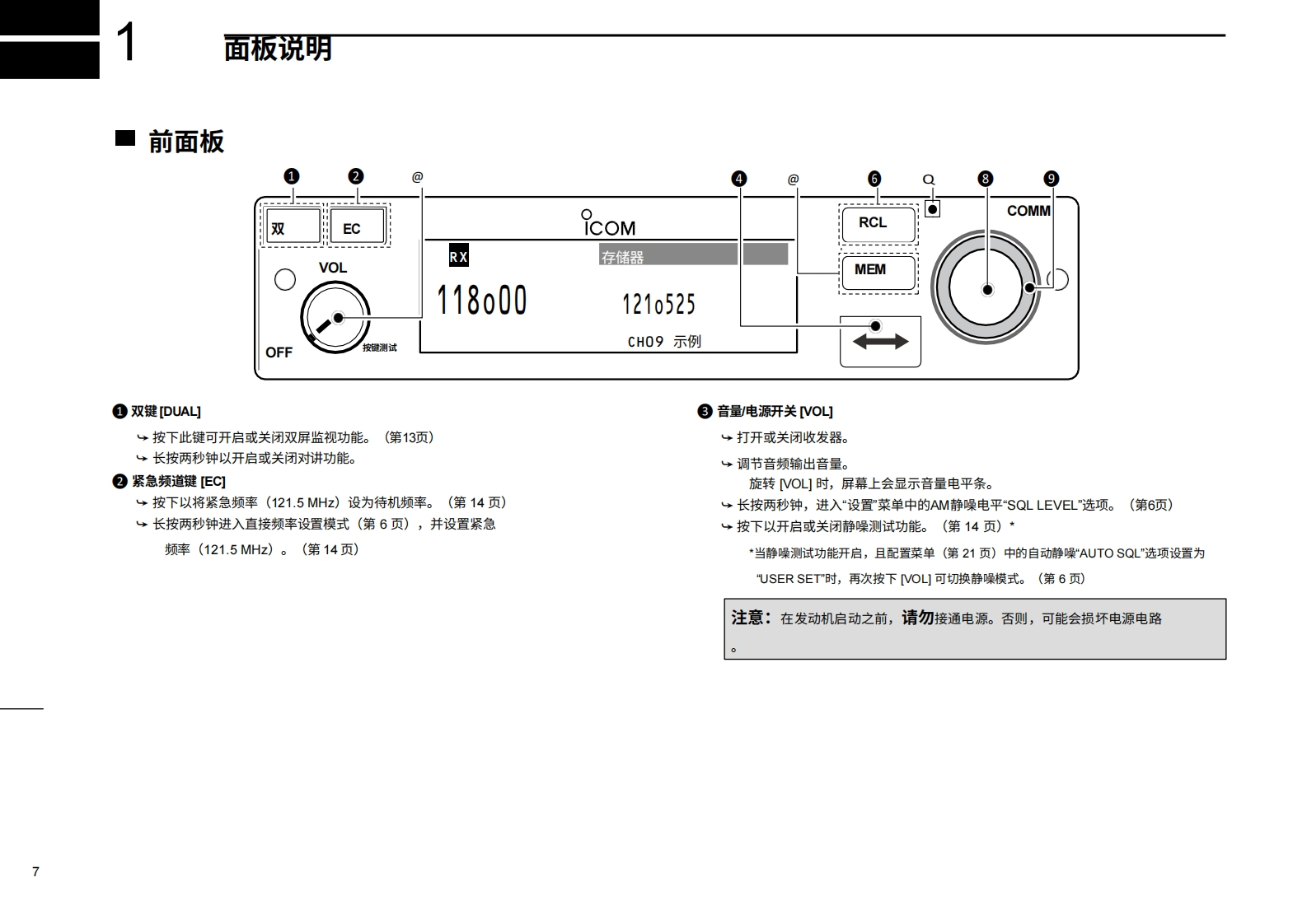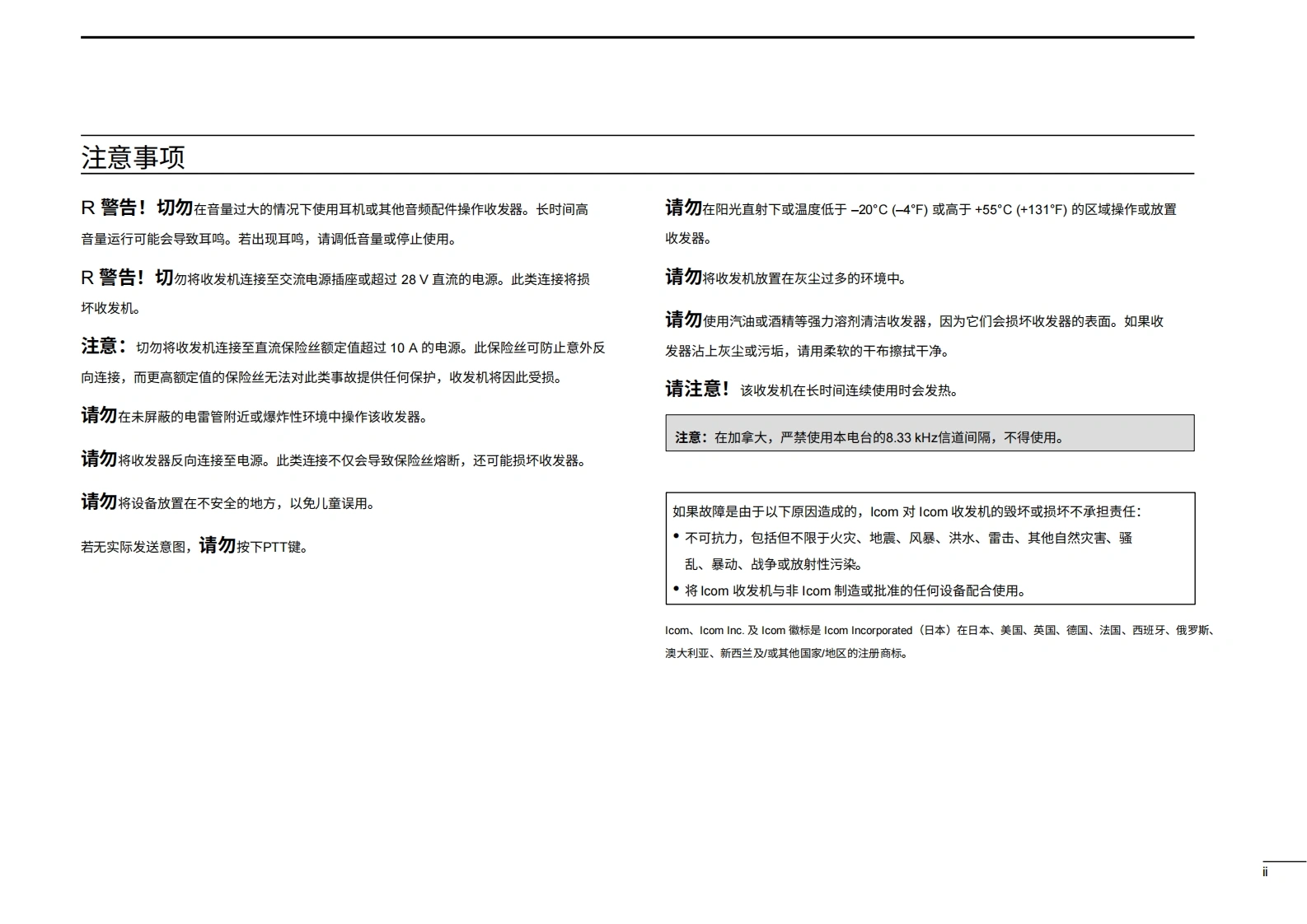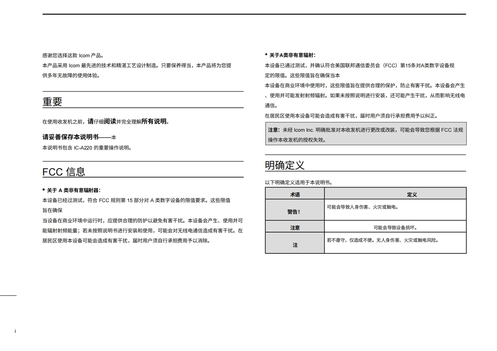 艾可慕icom-ic-a220tso-user-guide操作说明书手册20260331-中文版找手册网11天前发布关注私信1.21MB44页048艾可慕icom-ic-a220tso-user-guide操作说明书手册20260331-中文版此内容为付费资源,请付费后查看¥19¥21黄金会员免费钻石会员免费登录购买付费资源 第1页 / 共44页 第2页 / 共44页 第3页 / 共44页 第4页 / 共44页 第5页 / 共44页 第6页 / 共44页 第7页 / 共44页 第8页 / 共44页 第9页 / 共44页 第10页 / 共44页 试读已结束,还剩34页,您可下载完整版后进行离线阅读 THE END艾可慕 文本预览 COM使用说明书VHF航空频段收发机DUAL ECiCOMRCL■COMMiA22VOLRX●118.00136.975MEMA7186D-1SX5OFF1C-A220·通过TS0C128a和C169a认证·本设备符合FCC规则第15部分的规定。使用本设备须确保不会造成有害干扰。Icom America Inc. 查看更多 收起部分 喜欢就支持一下吧收藏