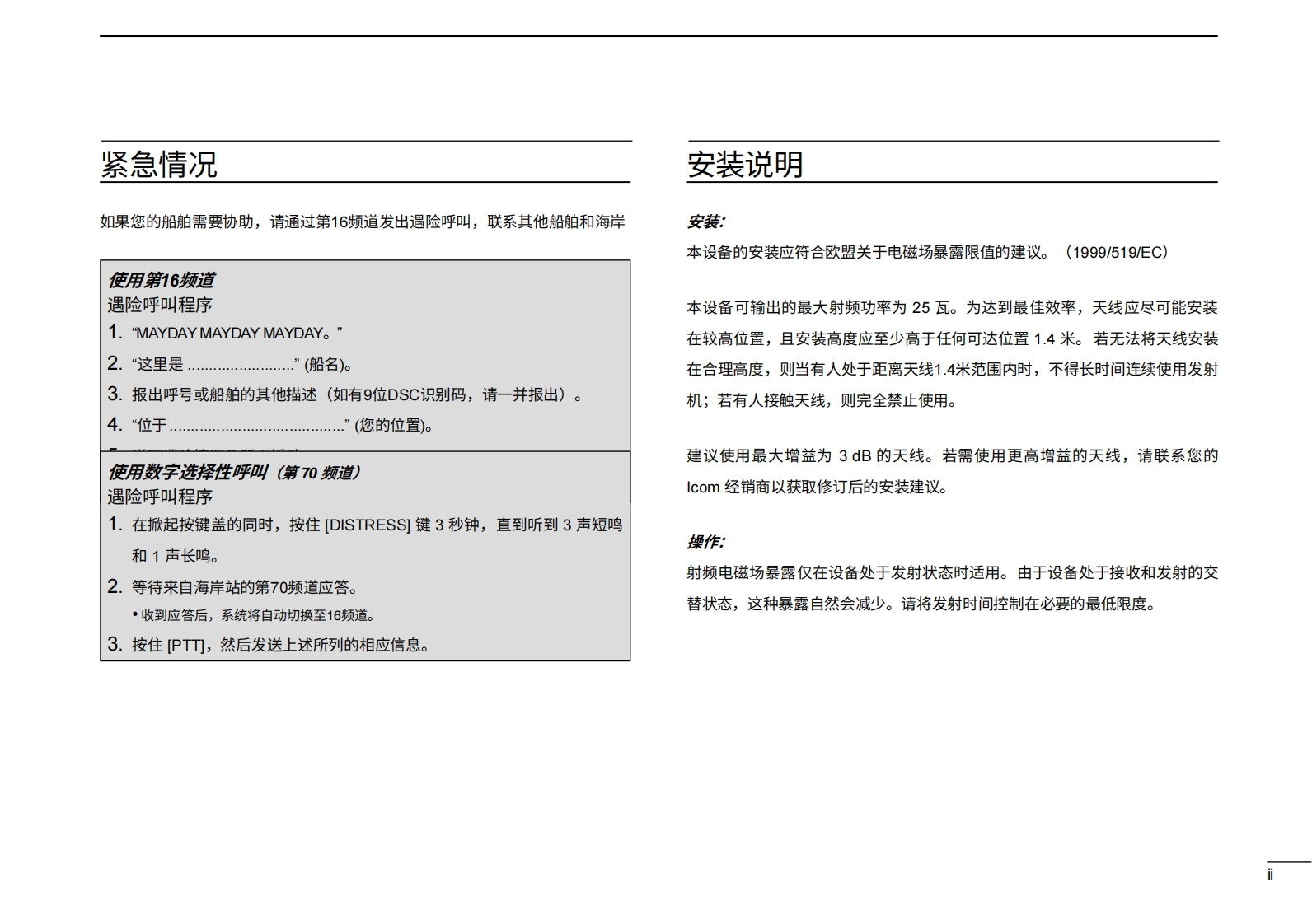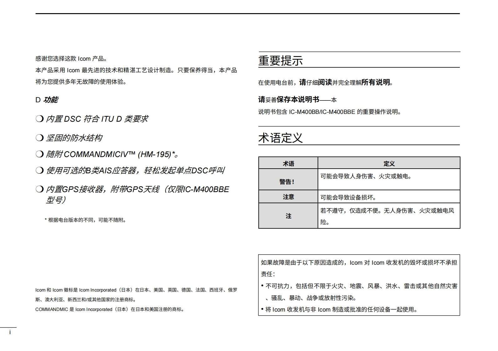 艾可慕icom-ic-m400bb-user-manual操作说明书手册-en20260331-中文版找手册网11天前发布关注私信1.76MB29页046艾可慕icom-ic-m400bb-user-manual操作说明书手册-en20260331-中文版此内容为付费资源,请付费后查看¥19¥21黄金会员免费钻石会员免费登录购买付费资源 第1页 / 共29页 第2页 / 共29页 第3页 / 共29页 第4页 / 共29页 第5页 / 共29页 第6页 / 共29页 第7页 / 共29页 第8页 / 共29页 第9页 / 共29页 第10页 / 共29页 试读已结束,还剩19页,您可下载完整版后进行离线阅读 THE END艾可慕 文本预览 使用说明书VHF船用收发机IM400BBIM400BBE▣▣▣▣四金四COMMANDMIC本设备符合美国联邦通信委员会(FCC)规则第15部分的规定。使用本设备须确RCOM花wao保不会造成有害干扰。COMMANDMICIVTM (HM-195)根据收发机版本的不同,可能不随附此配件Icom Inc. 查看更多 收起部分 喜欢就支持一下吧收藏