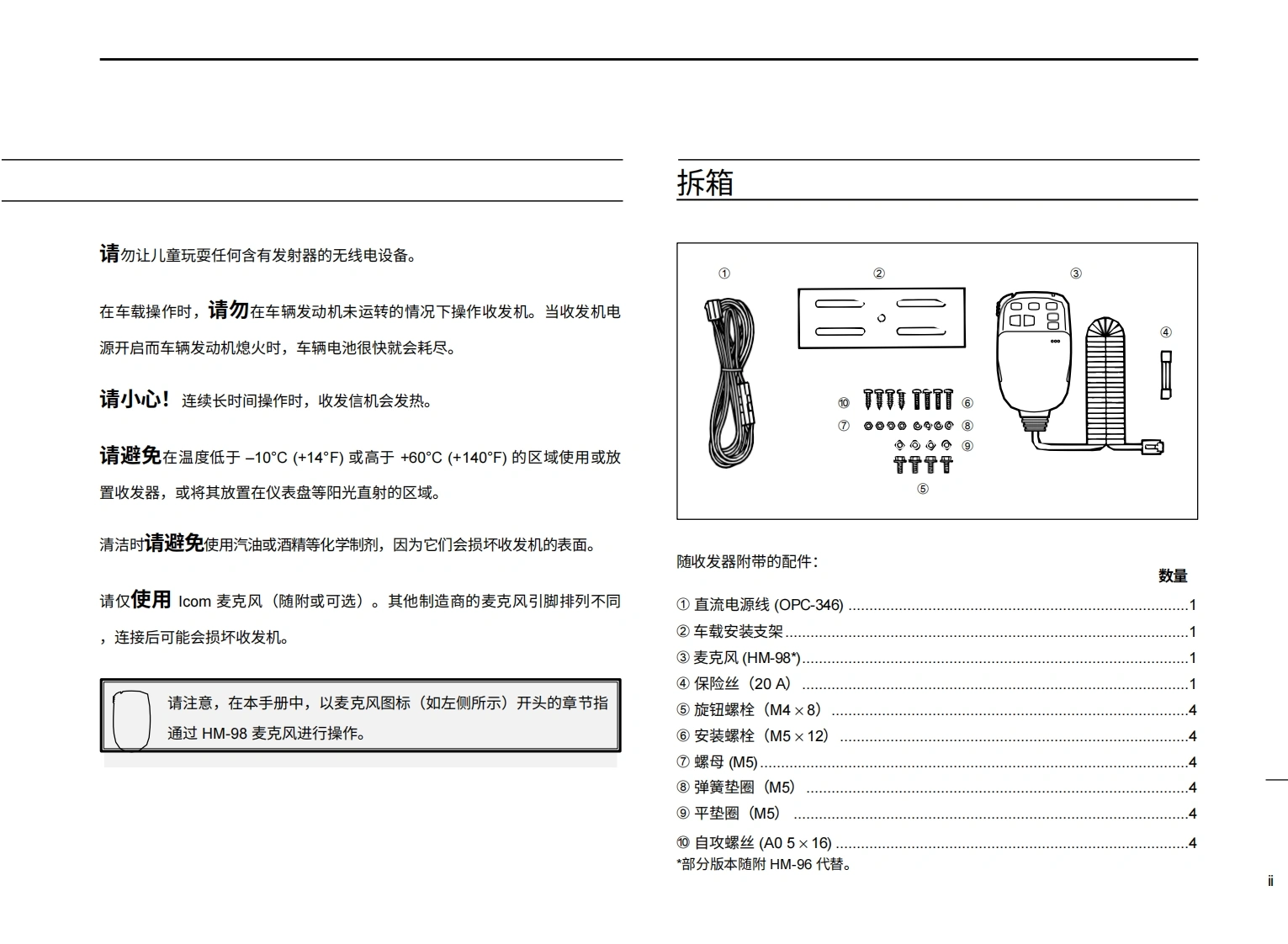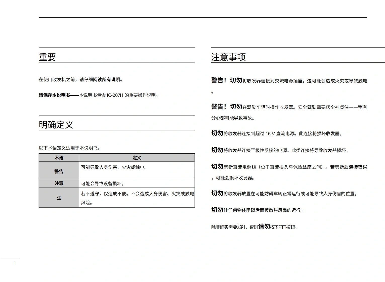 艾可慕Icom_IC-207H-(Manual操作说明书手册)20260331-中文版找手册网10天前发布关注私信4.29MB90页021艾可慕Icom_IC-207H-(Manual操作说明书手册)20260331-中文版此内容为付费资源,请付费后查看¥19¥21黄金会员免费钻石会员免费登录购买付费资源 第1页 / 共90页 第2页 / 共90页 第3页 / 共90页 第4页 / 共90页 第5页 / 共90页 第6页 / 共90页 第7页 / 共90页 第8页 / 共90页 第9页 / 共90页 第10页 / 共90页 试读已结束,还剩80页,您可下载完整版后进行离线阅读 THE END艾可慕 文本预览 ●coM使用说明书VHF/UHF FM收发机i207H本设备符合FCC规则第15部分的规定。其使用须遵守以下两个条件:(1)本设备不得造成有害干扰;(2)本设备必须接受任何接收到的干扰,包括可能导致意外运行的干扰。Icom Inc. 查看更多 收起部分 喜欢就支持一下吧收藏