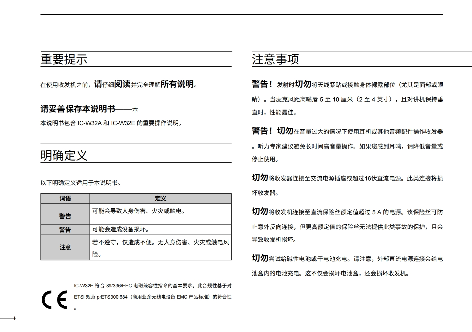 艾可慕Icom_IC-W32A-IC-W32E-(-Manual操作说明书手册)20260331-中文版找手册网11天前发布关注私信3.05MB64页024艾可慕Icom_IC-W32A-IC-W32E-(-Manual操作说明书手册)20260331-中文版此内容为付费资源,请付费后查看¥19¥21黄金会员免费钻石会员免费登录购买付费资源 第1页 / 共64页 第2页 / 共64页 第3页 / 共64页 第4页 / 共64页 第5页 / 共64页 第6页 / 共64页 第7页 / 共64页 第8页 / 共64页 第9页 / 共64页 第10页 / 共64页 试读已结束,还剩54页,您可下载完整版后进行离线阅读 THE END艾可慕 文本预览 icom使用说明书双频段调频收发机I8-w3呈本设备符合FCC规则第15部分的规定。其使用须遵守以下两个条件:(1)本设备不得造成有害干扰;(②)本设备必须接受任何接收到的干扰,包括可能导致意外运行的干扰。Icom Inc. 查看更多 收起部分 喜欢就支持一下吧收藏