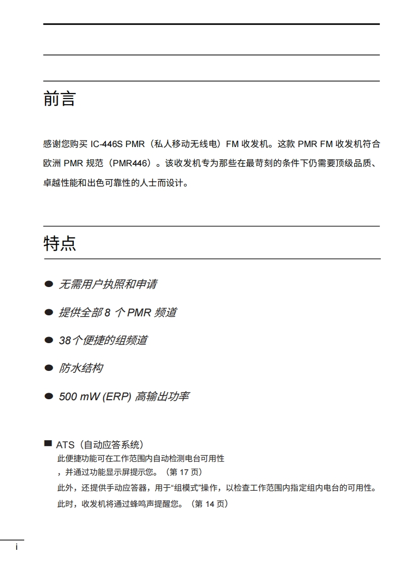 艾可慕icom_ic446s_使用说明书手册20260331-中文版找手册网11天前发布关注私信1.84MB34页050艾可慕icom_ic446s_使用说明书手册20260331-中文版此内容为付费资源,请付费后查看¥19¥21黄金会员免费钻石会员免费登录购买付费资源 第1页 / 共34页 第2页 / 共34页 第3页 / 共34页 第4页 / 共34页 第5页 / 共34页 第6页 / 共34页 第7页 / 共34页 第8页 / 共34页 第9页 / 共34页 第10页 / 共34页 试读已结束,还剩24页,您可下载完整版后进行离线阅读 THE END艾可慕 文本预览 TCOM使用说明书PMR446FM收发机i446SIcom Inc 查看更多 收起部分 喜欢就支持一下吧收藏