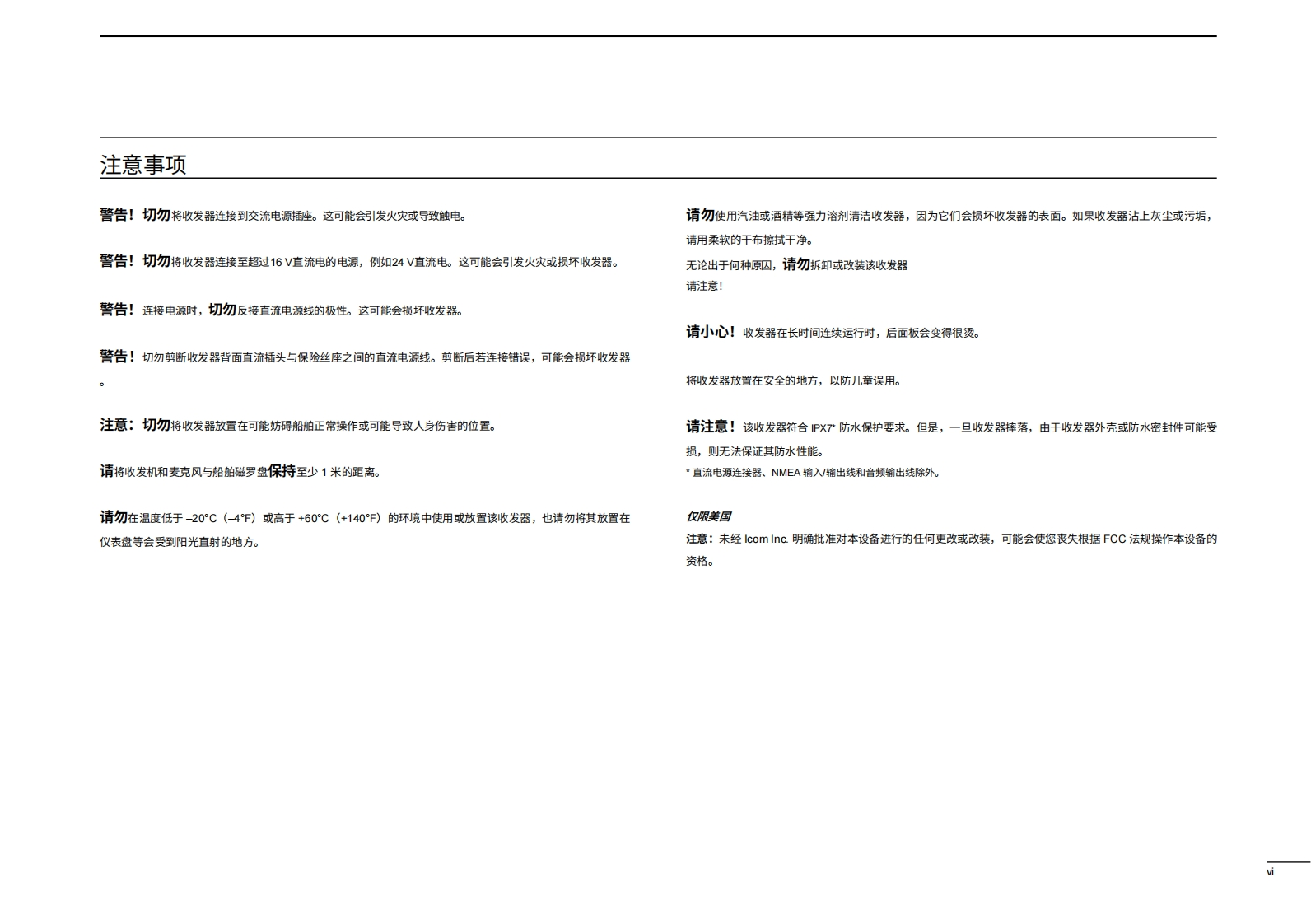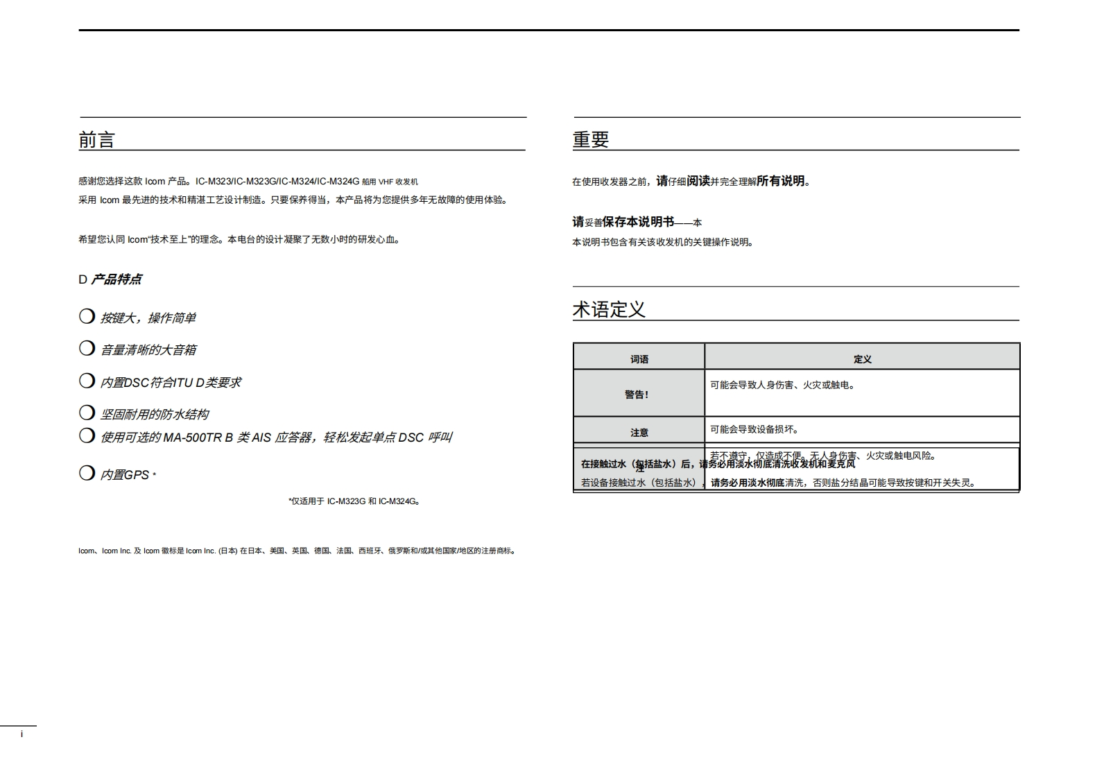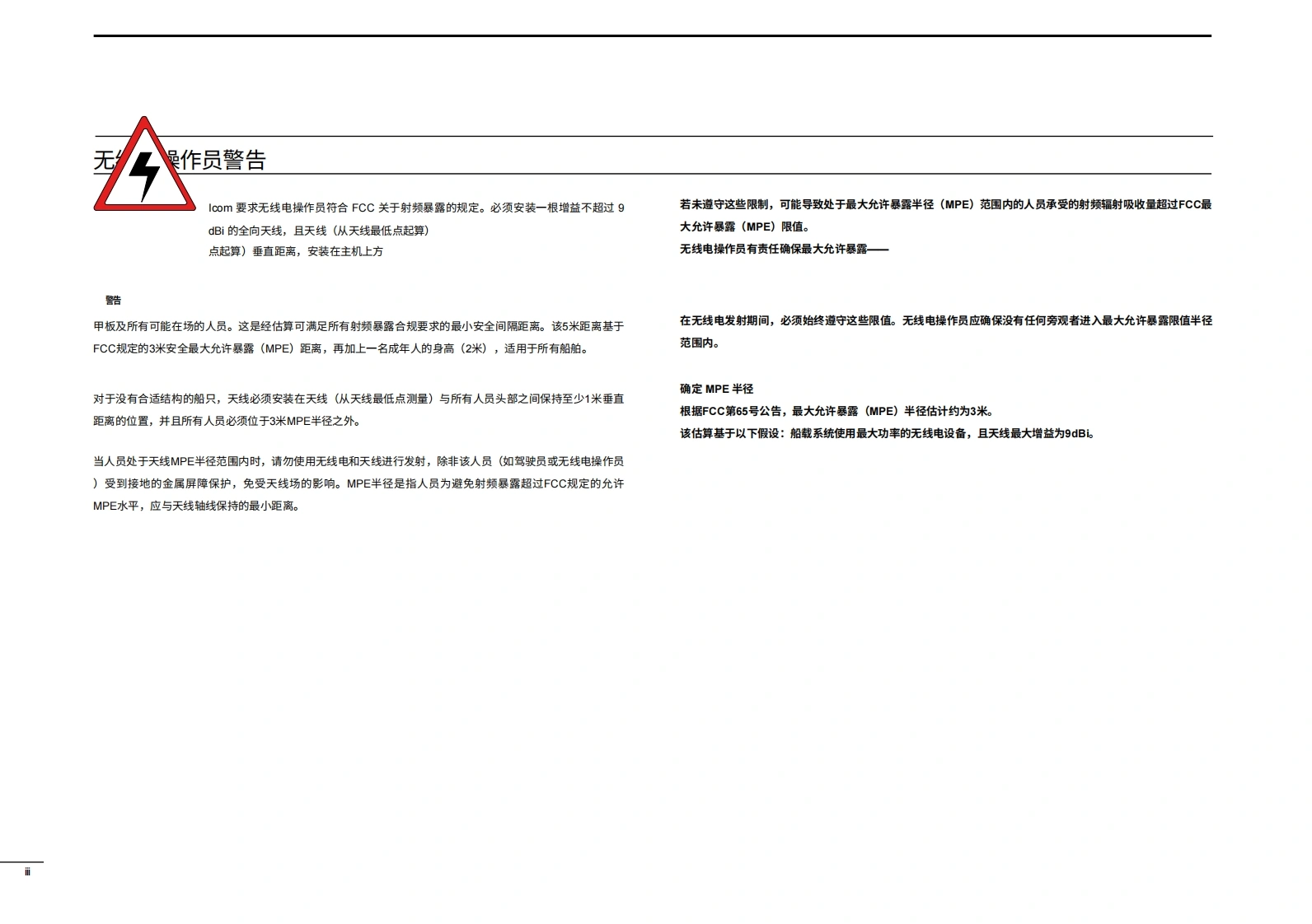艾可慕icom_icm323g_m324g_使用说明书手册20260331-中文版找手册网11天前发布关注私信4.10MB101页025艾可慕icom_icm323g_m324g_使用说明书手册20260331-中文版此内容为付费资源,请付费后查看¥19¥21黄金会员免费钻石会员免费登录购买付费资源 第1页 / 共101页 第2页 / 共101页 第3页 / 共101页 第4页 / 共101页 第5页 / 共101页 第6页 / 共101页 第7页 / 共101页 第8页 / 共101页 第9页 / 共101页 第10页 / 共101页 试读已结束,还剩91页,您可下载完整版后进行离线阅读 THE END艾可慕 文本预览 使用说明书VHF船用收发机iM323 iM323GiM324 iM324G本设备符合美国联邦通信委员会(FCC)规则第15部分的规定。使用本设备须确保不会造成有害干扰。@COMVHF MARINE IC-M32325WIH回再16ENT4招程:3888附N0w1312:00CALLINGMENU CLEARIcom Inc.SCAN DW■HI/LO CHAN, 查看更多 收起部分 喜欢就支持一下吧收藏