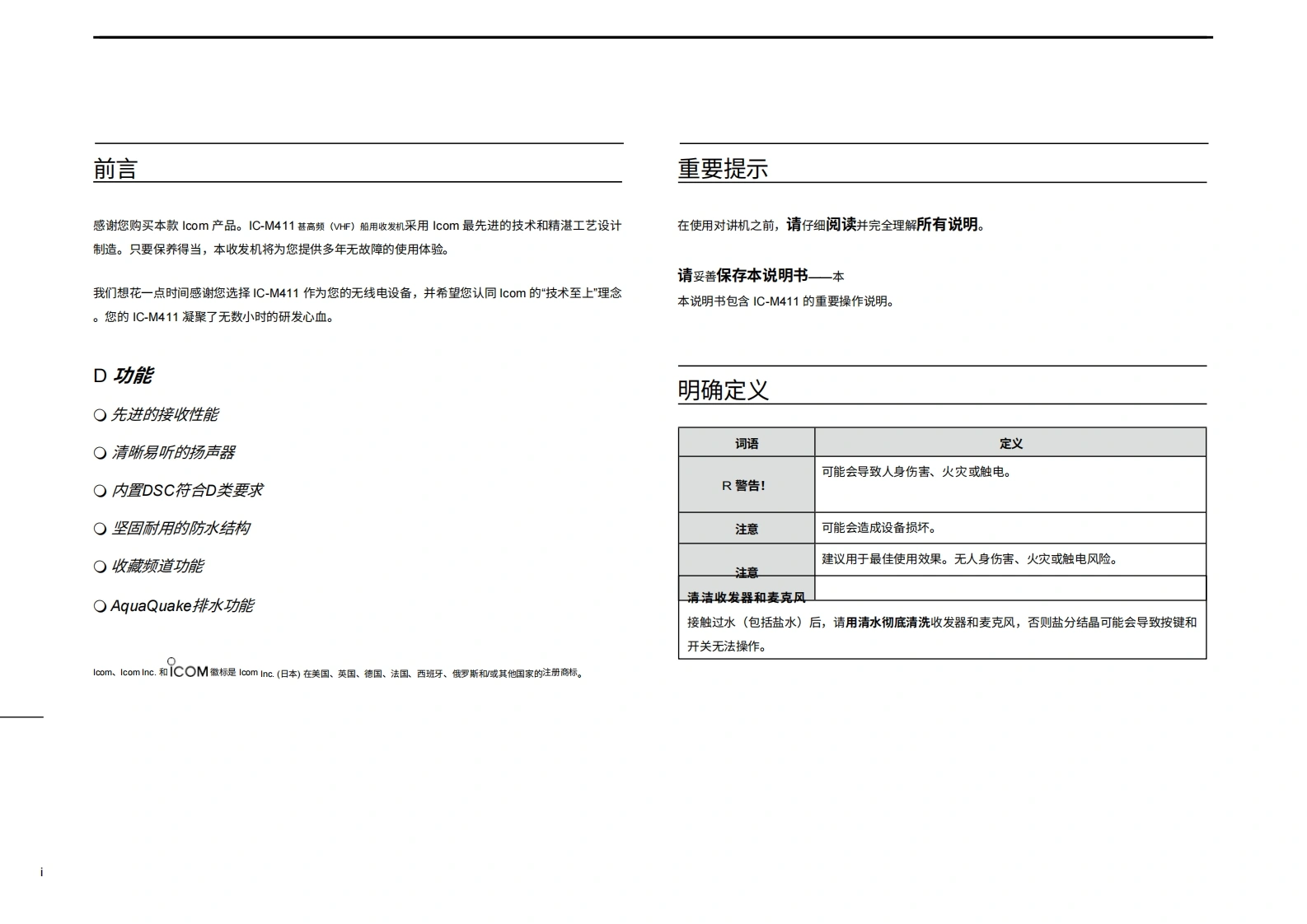 艾可慕icom_icm411_使用说明书手册20260331-中文版找手册网10天前发布关注私信5.37MB66页045艾可慕icom_icm411_使用说明书手册20260331-中文版此内容为付费资源,请付费后查看¥19¥21黄金会员免费钻石会员免费登录购买付费资源 第1页 / 共66页 第2页 / 共66页 第3页 / 共66页 第4页 / 共66页 第5页 / 共66页 第6页 / 共66页 第7页 / 共66页 第8页 / 共66页 第9页 / 共66页 第10页 / 共66页 试读已结束,还剩56页,您可下载完整版后进行离线阅读 THE END艾可慕 文本预览 COM使用说明书VHF船用收发机iM411VHF MARINE IC-M411VOLf 6CRLLINGTAGCOMDUALMMSISOL16CHMENUGRPTAGSCANCLRENTIcom Inc. 查看更多 收起部分 喜欢就支持一下吧收藏