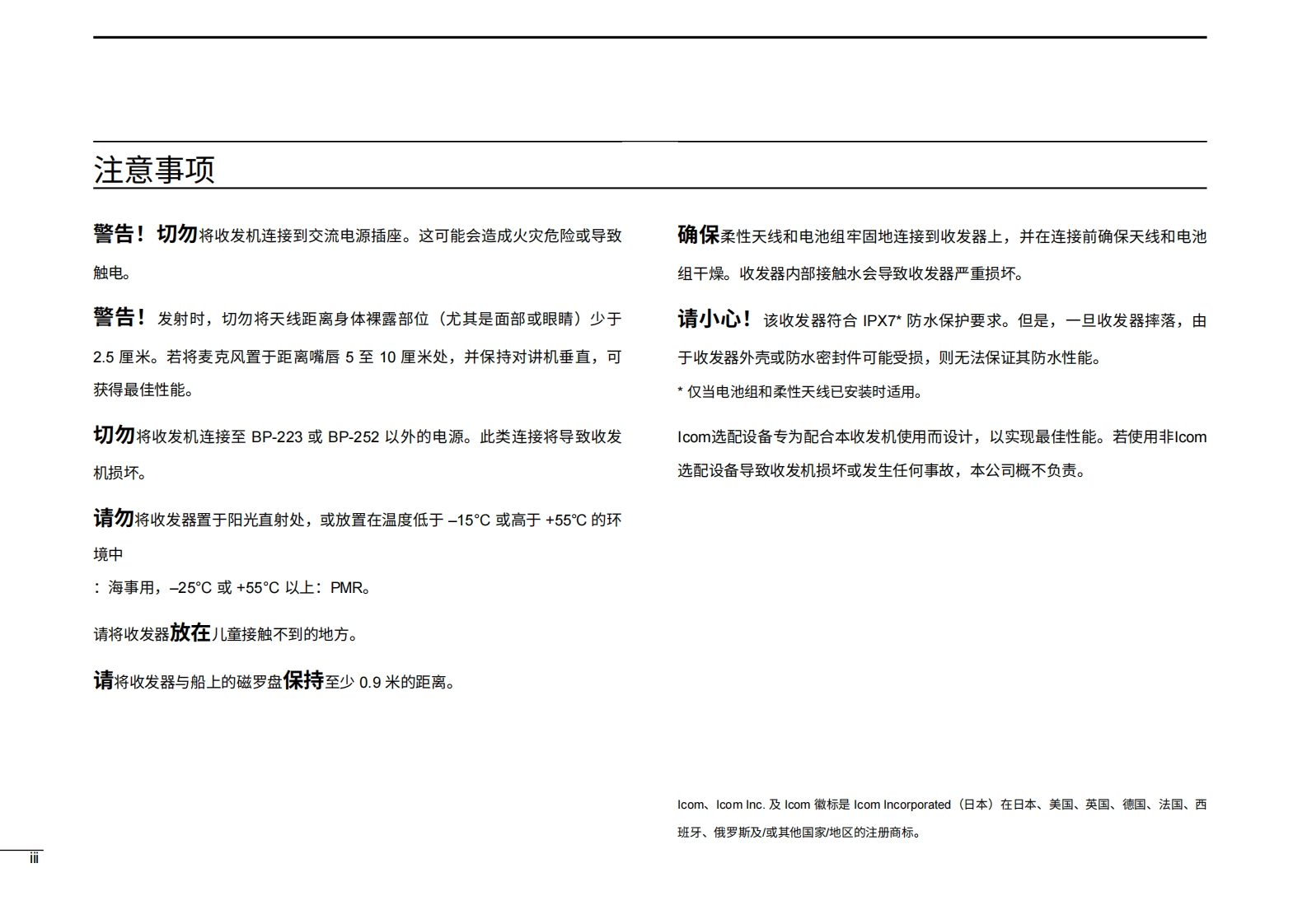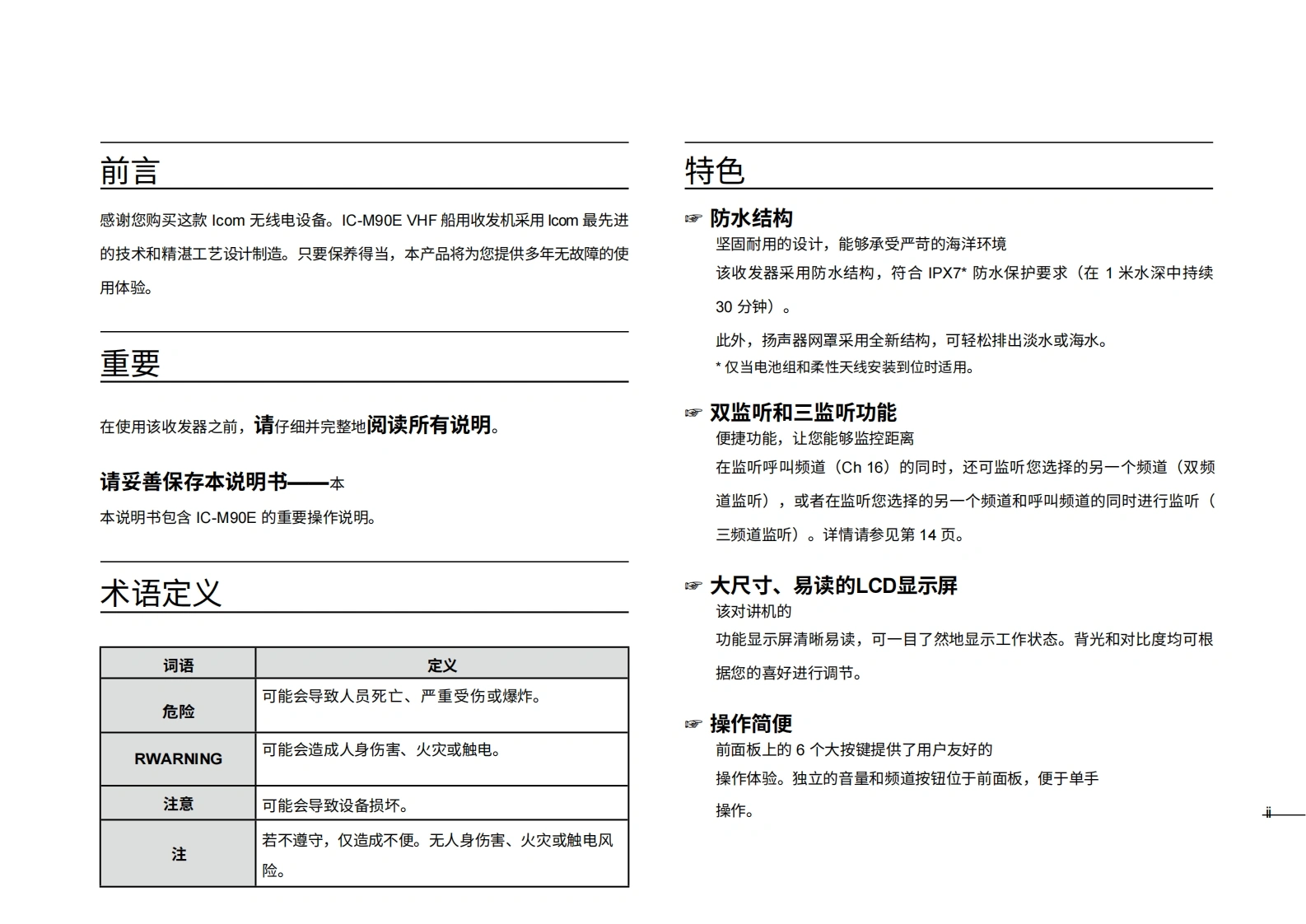 艾可慕icom_icm90e_使用说明书手册20260331-中文版找手册网11天前发布关注私信3.26MB42页024艾可慕icom_icm90e_使用说明书手册20260331-中文版此内容为付费资源,请付费后查看¥19¥21黄金会员免费钻石会员免费登录购买付费资源 第1页 / 共42页 第2页 / 共42页 第3页 / 共42页 第4页 / 共42页 第5页 / 共42页 第6页 / 共42页 第7页 / 共42页 第8页 / 共42页 第9页 / 共42页 第10页 / 共42页 试读已结束,还剩32页,您可下载完整版后进行离线阅读 THE END艾可慕 文本预览 COM使用说明书VHF船用收发机i-M9OEICOMDUADIALSCANIcom Inc. 查看更多 收起部分 喜欢就支持一下吧收藏