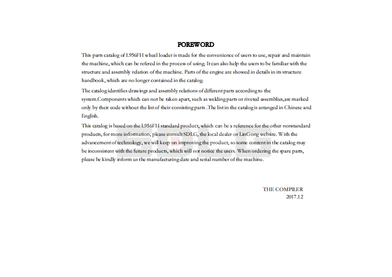 山东临工SDLG-LG956FH发动机零部件备件目录手册图册找手册网4天前发布关注私信4.61MB291页034山东临工SDLG-LG956FH发动机零部件备件目录手册图册此内容为付费资源,请付费后查看¥39¥41黄金会员免费钻石会员免费登录购买付费资源 第1页 / 共291页 第2页 / 共291页 第3页 / 共291页 第4页 / 共291页 第5页 / 共291页 第6页 / 共291页 第7页 / 共291页 第8页 / 共291页 第9页 / 共291页 第10页 / 共291页 试读已结束,还剩281页,您可下载完整版后进行离线阅读 THE END柳工/临工/龙工/台励福/常林/成工 文本预览 L956FH WHEEL LOADERPARTS CATALOGGOLGSHANDONG LINGONG CONSTRUCTION MACHINERY CO.,LTD. 查看更多 收起部分 喜欢就支持一下吧收藏