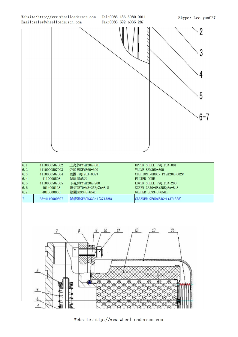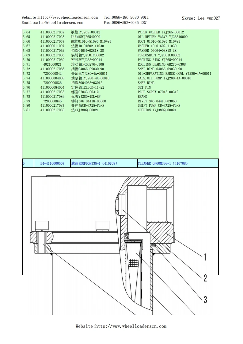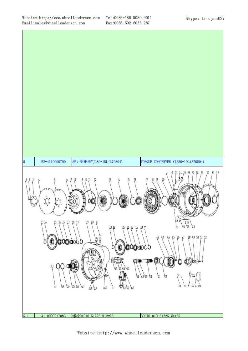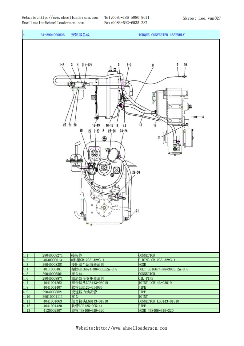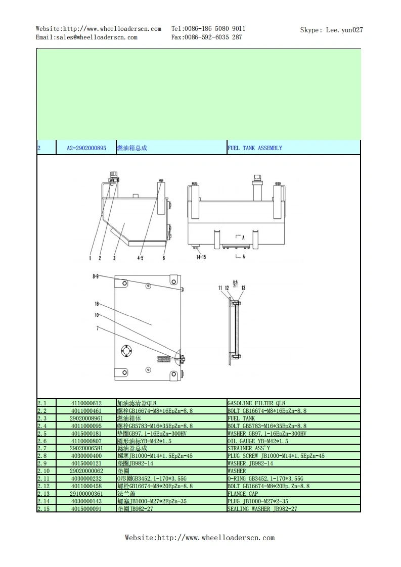 Website:http://www.wheelloaderscn.comTe1:0086-18650809011Skype:Lee.yun027Email:sales@wheelloaderscn.comFax:0086-592-6035287序号编码名称英文名称01609214A29LG916轮式装载机TU0E-1609214A29A1-2901001668发动机总成DIESEL ENGINE ASSEMBLY02-2》-90554110001006发动机ZHBG44ENGINE ZHBG44229010017301橡胶垫RUBBER GASKET34015000197垫圈GB96.1-10EpZn-300HWWASHER GB96.1-10EpZn-300HV.44011000082螺栓GB5783-M10*25EpZn-8.8B0LTGB5783-10*25EpZn-8.81.529010017591上盖板(LG916华丰)PLATE1.64011000474螺栓GB16674-10*25EpZn-8.8B0LTGB16674-10*25EpZn-8.8.729010017331橡胶垫RUBBER GASKET1.829010017381橡胶垫RUBBER GASKET1.929010017261空滤环雍CLAMP.1029010017491停车操纵软轴】PARKING CONTROL SYSTEMWebsite:http://www.wheelloaderscn.com