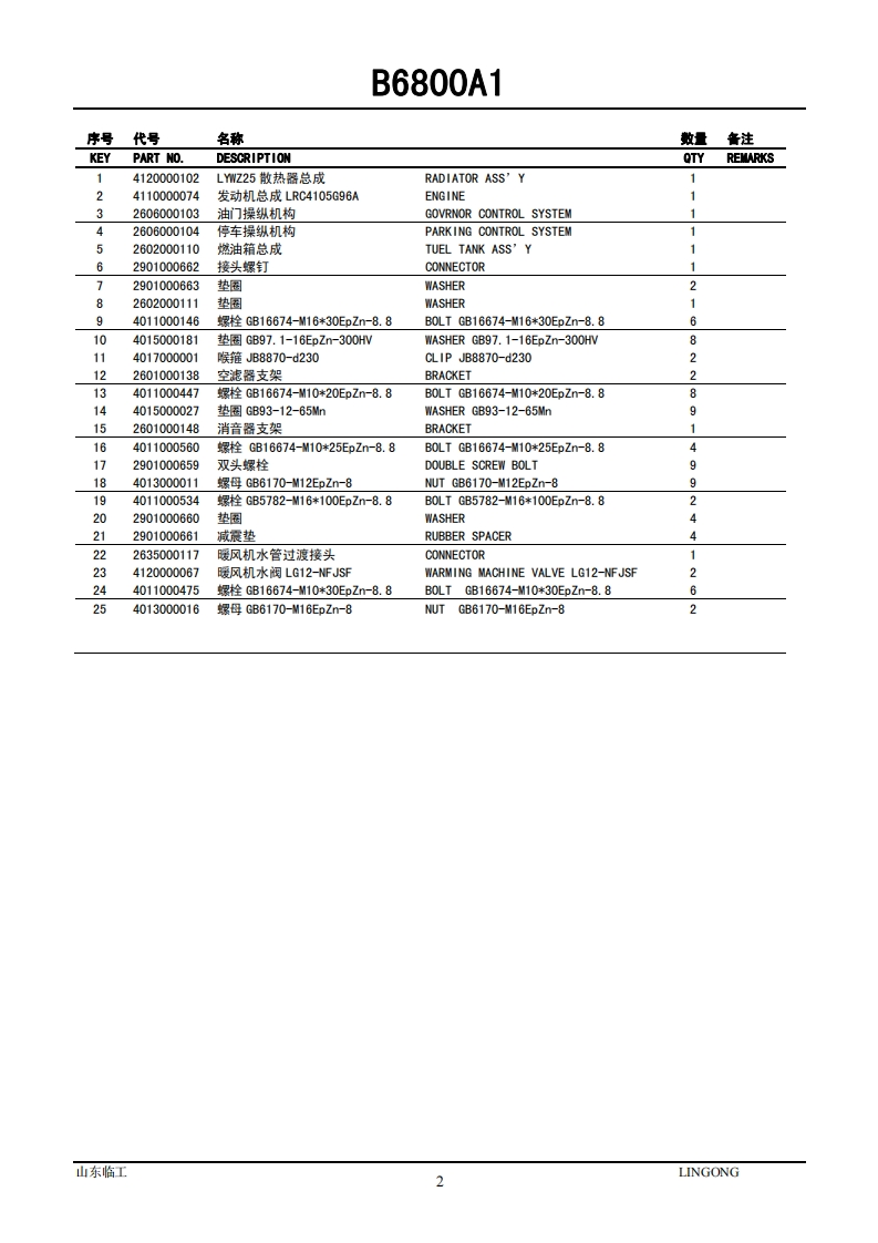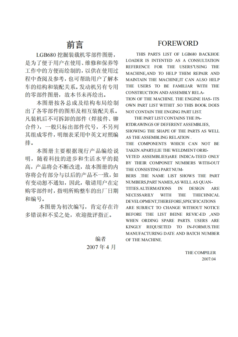 山东临工SDLG_LGB680发动机零部件备件目录手册图册找手册网4天前发布关注私信3.91MB163页039山东临工SDLG_LGB680发动机零部件备件目录手册图册此内容为付费资源,请付费后查看¥39¥41黄金会员免费钻石会员免费登录购买付费资源 第1页 / 共163页 第2页 / 共163页 第3页 / 共163页 第4页 / 共163页 第5页 / 共163页 第6页 / 共163页 第7页 / 共163页 第8页 / 共163页 第9页 / 共163页 第10页 / 共163页 试读已结束,还剩153页,您可下载完整版后进行离线阅读 THE END柳工/临工/龙工/台励福/常林/成工 文本预览 LGB680挖掘装载机零部件图册LGB680 BACKHOE LOADER PARTS CATALOG山东临工工程机械有限公司SHANDONG LINGONG CONSTRUCTION MACHINERY CO.,LTD. 查看更多 收起部分 喜欢就支持一下吧收藏