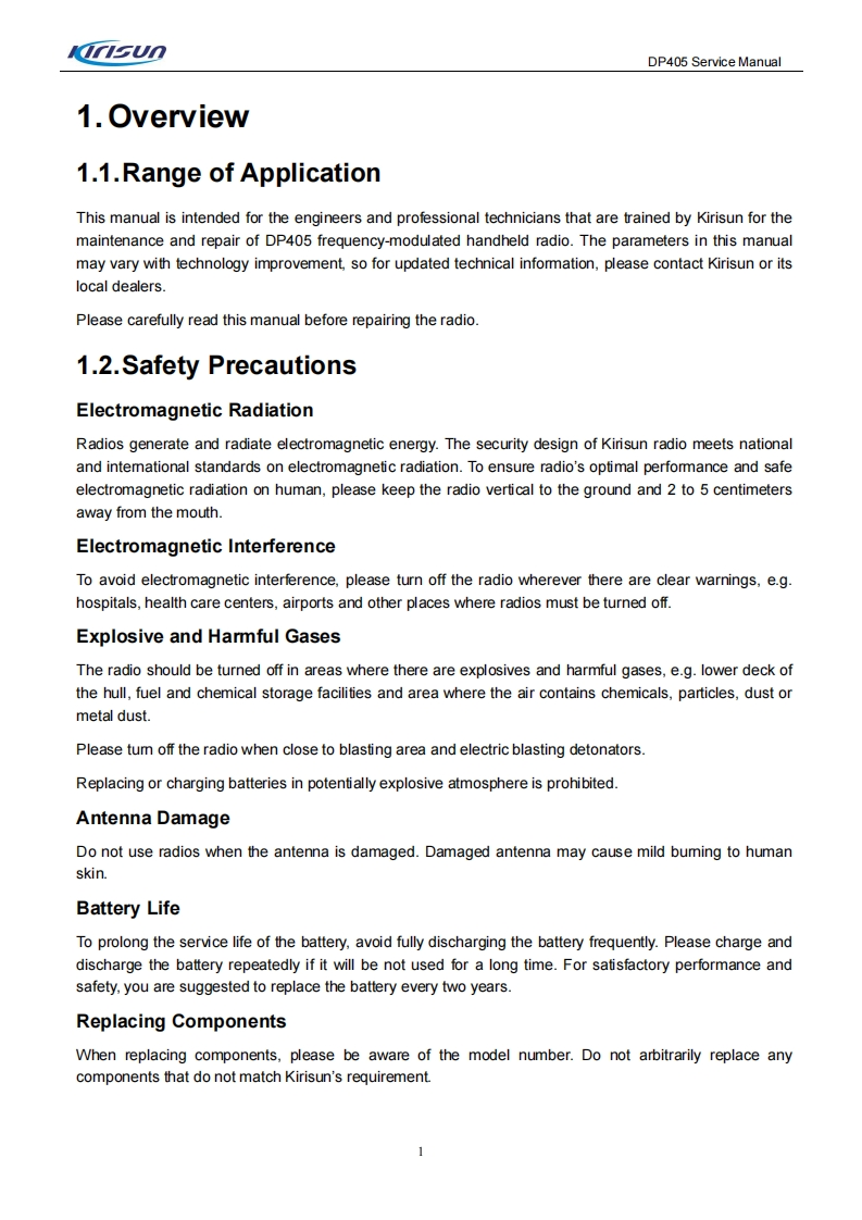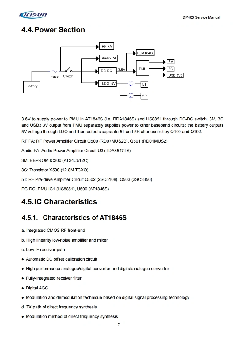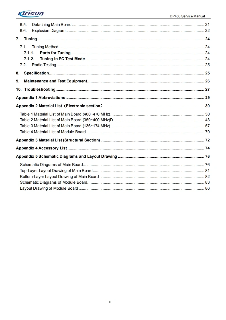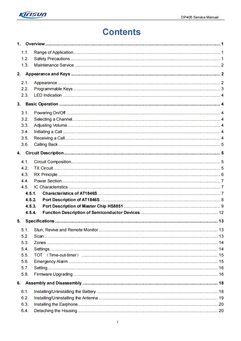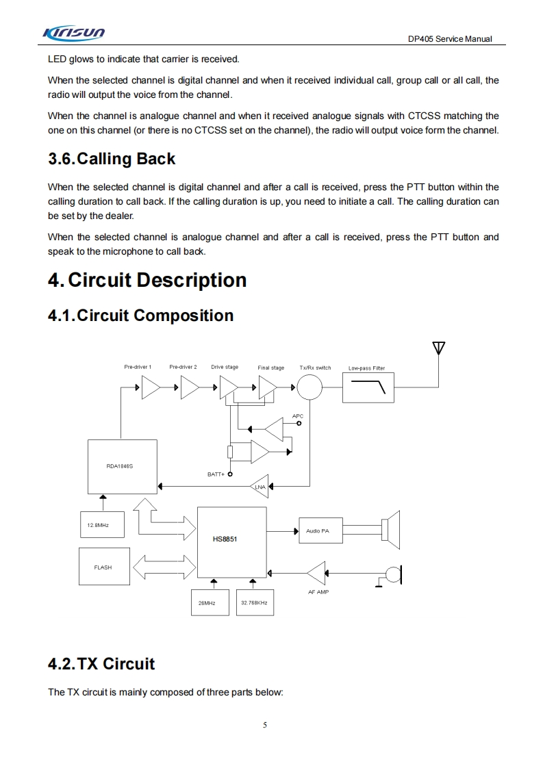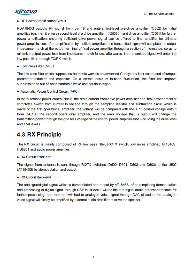 KIRISUN科立讯DP405-SERVICE-MANUAL维修手册含电器原理图找手册网10天前发布关注私信3.98MB89页023KIRISUN科立讯DP405-SERVICE-MANUAL维修手册含电器原理图此内容为付费资源,请付费后查看¥19¥21黄金会员免费钻石会员免费登录购买付费资源 第1页 / 共89页 第2页 / 共89页 第3页 / 共89页 第4页 / 共89页 第5页 / 共89页 第6页 / 共89页 第7页 / 共89页 第8页 / 共89页 第9页 / 共89页 第10页 / 共89页 试读已结束,还剩79页,您可下载完整版后进行离线阅读 THE END科立讯 文本预览 KnsunProfessional wireless communication system solution supplierDP405SERVICE MANUALmmnV220927Kirisun Communications Co.,Ltd. 查看更多 收起部分 喜欢就支持一下吧收藏