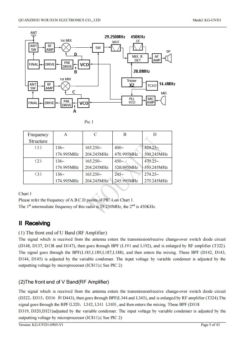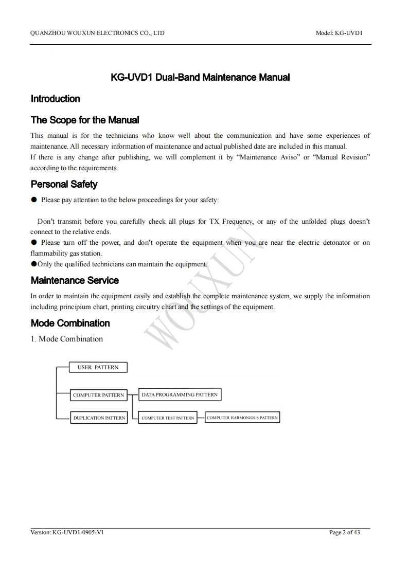 欧讯Wouxun-KGUVD1-维修手册含电器电路图Service-Manual找手册网11天前发布关注私信3.86MB43页038欧讯Wouxun-KGUVD1-维修手册含电器电路图Service-Manual此内容为付费资源,请付费后查看¥19¥21黄金会员免费钻石会员免费登录购买付费资源 第1页 / 共43页 第2页 / 共43页 第3页 / 共43页 第4页 / 共43页 第5页 / 共43页 第6页 / 共43页 第7页 / 共43页 第8页 / 共43页 第9页 / 共43页 第10页 / 共43页 试读已结束,还剩33页,您可下载完整版后进行离线阅读 THE END欧讯 文本预览 QUANZHOU WOUXUN ELECTRONICS CO.,LTDModel:KG-UVDIService manual:4Model:KG-UVD1Version:KG-UVD1-0905-V1QUANZHOU WOUXUN ELECTRONICS CO.,LTDVersion:KG-UVD1-0905-V1Page 1 of 43 查看更多 收起部分 喜欢就支持一下吧收藏