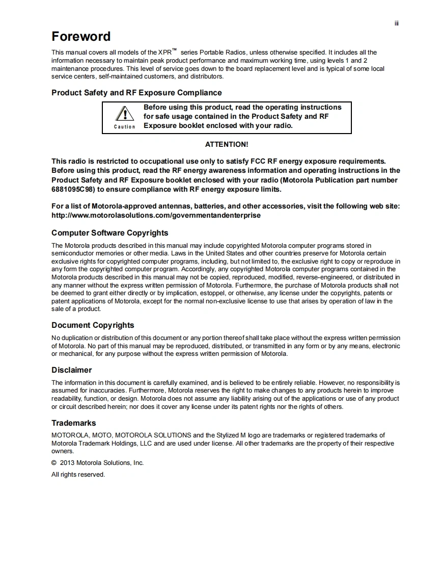 摩托罗拉-xpr7000_8-900_service_manual_68009652001_a__bsm_mol维修手册含电路原理图找手册网10天前发布关注私信7.84MB120页045摩托罗拉-xpr7000_8-900_service_manual_68009652001_a__bsm_mol维修手册含电路原理图此内容为付费资源,请付费后查看¥19¥21黄金会员免费钻石会员免费登录购买付费资源 第1页 / 共120页 第2页 / 共120页 第3页 / 共120页 第4页 / 共120页 第5页 / 共120页 第6页 / 共120页 第7页 / 共120页 第8页 / 共120页 第9页 / 共120页 第10页 / 共120页 试读已结束,还剩110页,您可下载完整版后进行离线阅读 THE END摩托罗拉 文本预览 从PROFESSIONAL DIGITAL TWO-WAY RADIOMOTOTRBOTMXPRTM 7000 SERIESBASIC SERVICE MANUAL④MOTOROLAMOTOROLA 查看更多 收起部分 喜欢就支持一下吧收藏