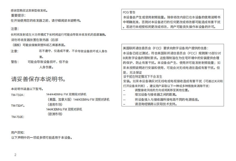 建武KENWOOD–TM-732-操作说明书手册中文版找手册网11天前发布关注私信6.42MB85页023建武KENWOOD–TM-732-操作说明书手册中文版此内容为付费资源,请付费后查看¥19¥21黄金会员免费钻石会员免费登录购买付费资源 第1页 / 共85页 第2页 / 共85页 第3页 / 共85页 第4页 / 共85页 第5页 / 共85页 第6页 / 共85页 第7页 / 共85页 第8页 / 共85页 第9页 / 共85页 第10页 / 共85页 试读已结束,还剩75页,您可下载完整版后进行离线阅读 THE END建武 文本预览 144/440MH位双频段调频对讲机TM-732A144430 MHz FM双频对讲机KENWOODTM-732A144W430 MHz FM双频对讲机TM-732E使用说明书KENWOOD CORPORATION日本印刷B20201-00K0MC)92121110987654321911211 查看更多 收起部分 喜欢就支持一下吧收藏