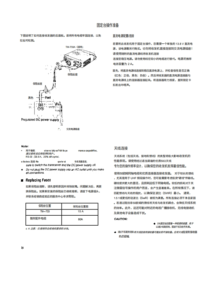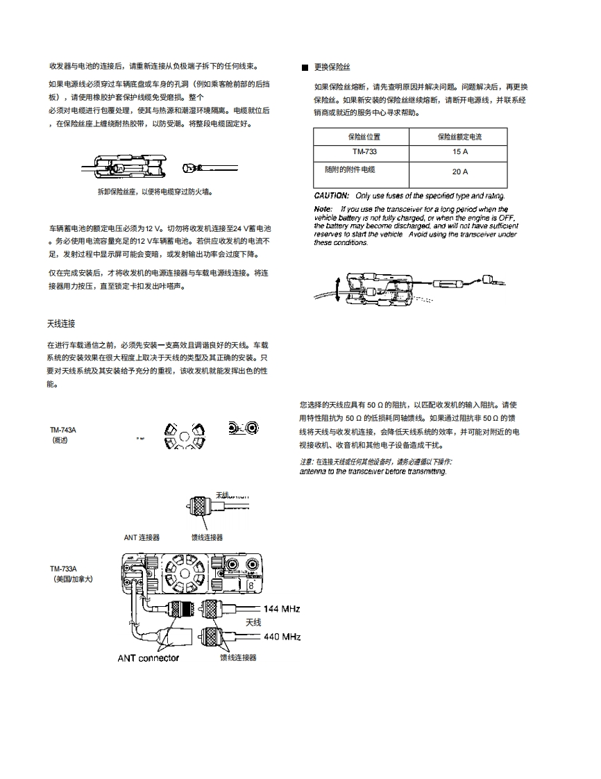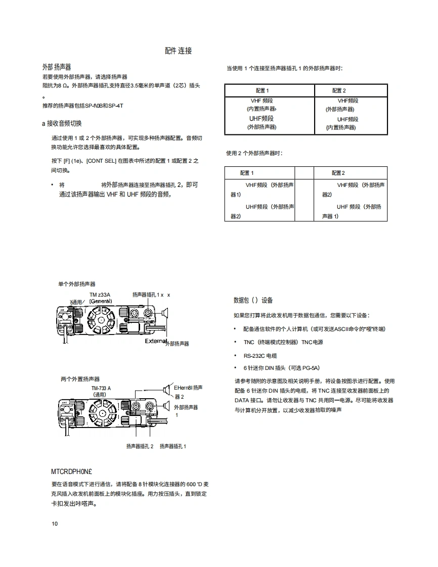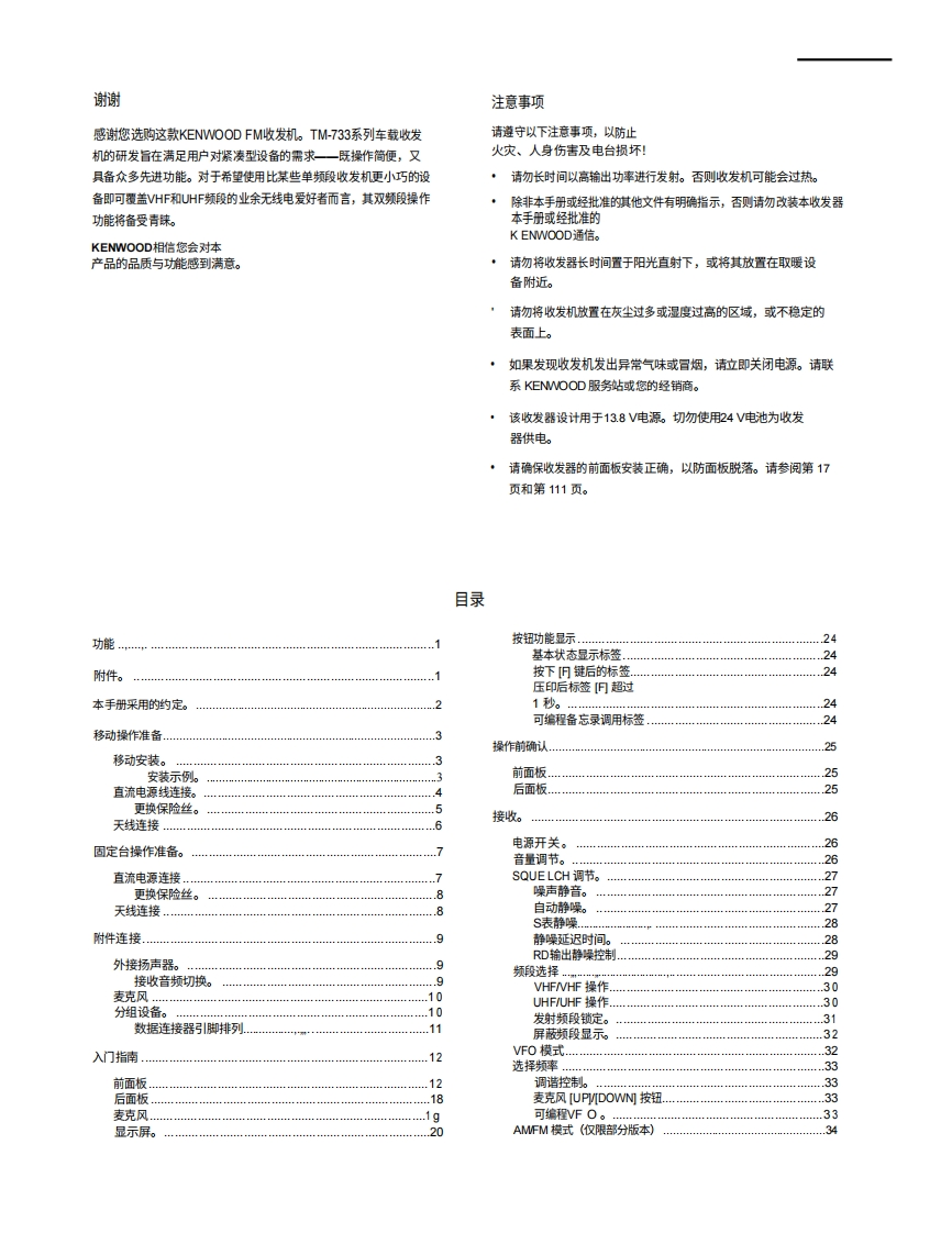 144/440MHz双频段调频对讲机TM-733AKENWO144/430 MHz FM双频对讲机TM-7 33A144/430 MHz FM双频对讲机TM -733E使用说明书ǒKENWOOD CORPORATIONDownloaded byRadioAmateur.EU日本印刷86203g1-60KP,E,M0WgsM211109876s3用户须知:本手册涵盖的型号以下说明中可能有一条或多条适用于本设备。TM733A:144/440 MHz FM双频段(美国加拿大)TM-733E:144430 MHz FM双频段西GWMW(欧洲)本设备使射频能量。若对莲般备进行改荒,可能会导致危检的干扰。已TM.733A-144430 MHz FM双频段收发机(通用明碳止型instruction manual.The user could lase the authority to operete thsequipment if an unauthorized change or moditication is made.Note:Functians requiring the microphone keypad,such as RemoteControl,cannot be used without a keypad-egupped mcrophone.This type of microghone is optonal for certain transceiver versions.INFORMATION TO THE DIGITAL DEVICE USER REQUIRED BY诱设备已通过训证,并被认定符合8类信号设备的相关器腰求,公合际海事公约》5条的规定。这些限制旨在提供合理的保护,防止在近海区域内发生干扰。该设备具有多种用途,并可满足一般广播。这些设备在名种环填中均可安装和使用,,从而在环境方百产生积极感响mdio00UiEg/HOwakww bere m8x8 0g fdtht8interferance will not occur in a parecular installation.If thisequpment does cause harmful intertorence to radio or tetevisionzwep1on.areh可以通过反复开启和关闭me agu'vzmenf来消除,建议使用作为上述措施之一。Peorianf ar zelodefe roe zeoe'vng dn/erva在设备与接收器之问增加隔离。Connect the equipment lo an outiel or a circu dfferent from如果文件接效器已连德,哈发生这种情况。清洁鳗码商以获得技术支抹