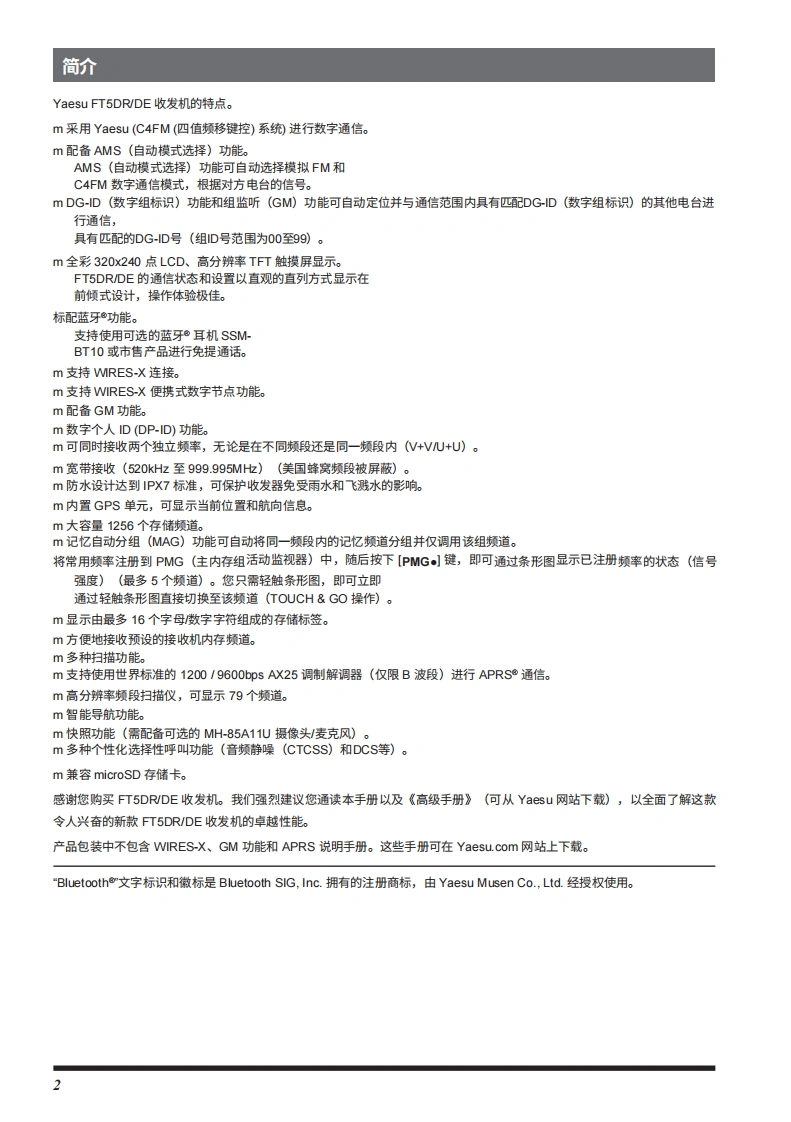 Yaesu_FT5DR_用户使用操作说明书手册中文版找手册网10天前发布关注私信7.67MB82页043Yaesu_FT5DR_用户使用操作说明书手册中文版此内容为付费资源,请付费后查看¥19¥21黄金会员免费钻石会员免费登录购买付费资源 第1页 / 共82页 第2页 / 共82页 第3页 / 共82页 第4页 / 共82页 第5页 / 共82页 第6页 / 共82页 第7页 / 共82页 第8页 / 共82页 第9页 / 共82页 第10页 / 共82页 试读已结束,还剩72页,您可下载完整版后进行离线阅读 THE END八重洲 文本预览 YAESUTec面oC4FM/FM 144/430MHz双频段数字收发机FT5DRFT5DE操作手册5D8VFOTXO1 RXO146.520DN。445.50地FMM-VTXAUTO MODEYAESUFT5DF MENUA/BBANDV/M.PMG.BACKMICBluetooth 查看更多 收起部分 喜欢就支持一下吧收藏
