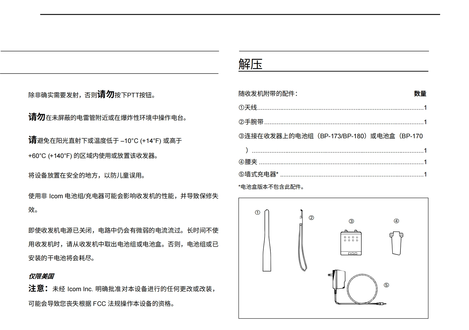 ICOM艾可慕IC-T7H_user操作说明书手册20260331中文版找手册网10天前发布关注私信2.44MB58页045ICOM艾可慕IC-T7H_user操作说明书手册20260331中文版此内容为付费资源,请付费后查看¥19¥21黄金会员免费钻石会员免费登录购买付费资源 第1页 / 共58页 第2页 / 共58页 第3页 / 共58页 第4页 / 共58页 第5页 / 共58页 第6页 / 共58页 第7页 / 共58页 第8页 / 共58页 第9页 / 共58页 第10页 / 共58页 试读已结束,还剩48页,您可下载完整版后进行离线阅读 THE END艾可慕 文本预览 ICOM使用说明书双频段调频收发机iH本设备符合美国联邦通信委员会(FCC)规则第15部分的规定。其使用须遵守以下两项条件:(1)本设备不得造成有害干扰;(2)本设备必须接受所接收到的任何干扰,包括可能导致意外运行的干扰。Downloaded byRadioAmateur.EU 查看更多 收起部分 喜欢就支持一下吧收藏