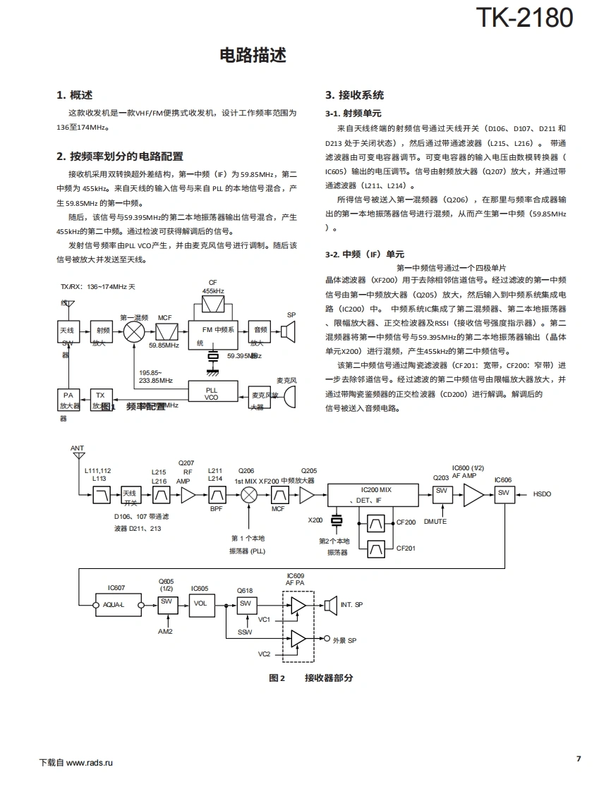 TK-2180KTK-2180K2螺旋天线(KRA-22:选配旋钮(CH选择器)(K29-9305-03)蟀超(音量)(K49-9304-03)按钮旋钮(侧面)(内容K29-9303-03)前面板玻璃B102752-22概述系统设置。2KENWOODKENWOOD重新对齐.3拆卸维修.5电路说明。7半导体数据.….13元件说明…14零件清单.16分解图。.25包装…3调整…275网6终端功能439PCB显示单元(X54-3470-X0)42收发单元(X57-6930-10)…46包装原理图旋钮(PTT)包装显示单元(X543470-X050TX-RX单元(X57-6930-10).52框图60层级图62(G58-1588-01)K29-9802-23(C58-1589-01)可选配件7-03机柜总成(02384