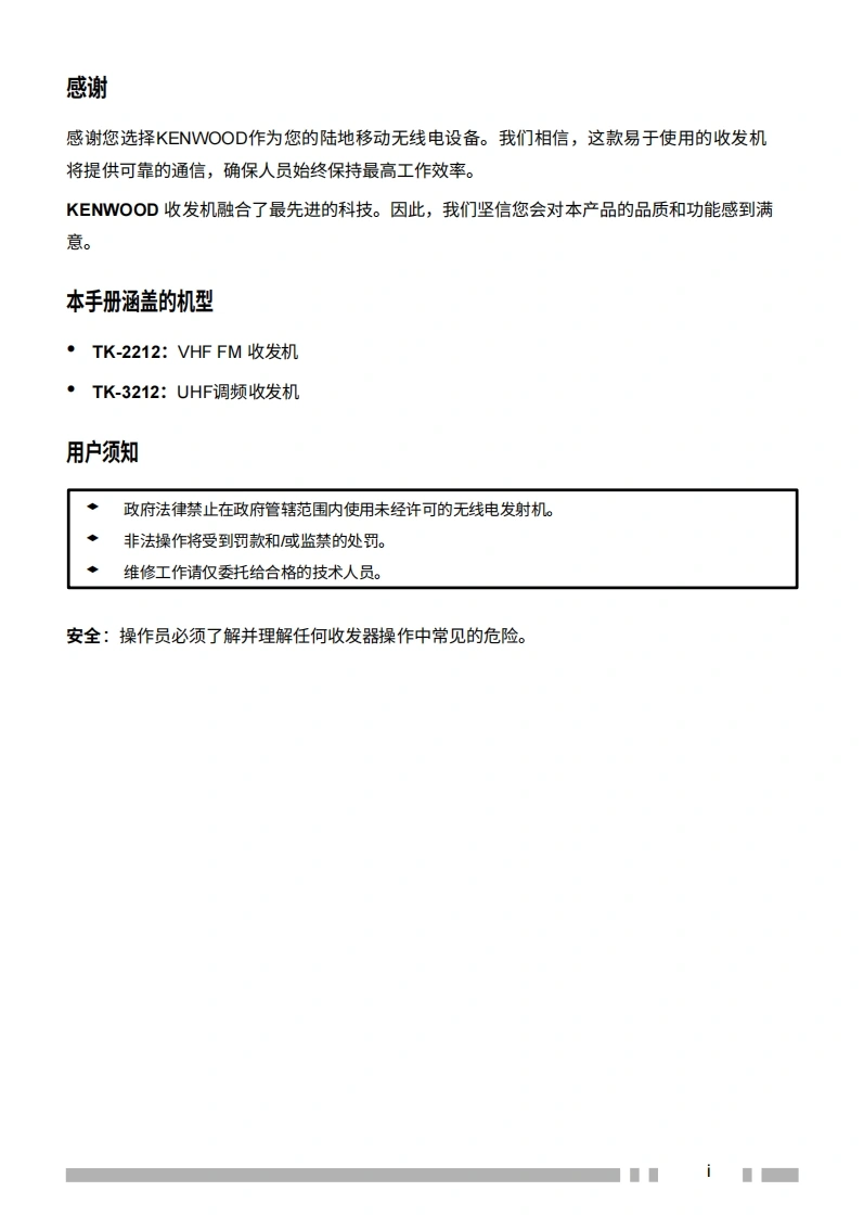 建武KenwoodTK-2212操作说明书手册中文版找手册网10天前发布关注私信1.55MB48页046建武KenwoodTK-2212操作说明书手册中文版此内容为付费资源,请付费后查看¥19¥21黄金会员免费钻石会员免费登录购买付费资源 第1页 / 共48页 第2页 / 共48页 第3页 / 共48页 第4页 / 共48页 第5页 / 共48页 第6页 / 共48页 第7页 / 共48页 第8页 / 共48页 第9页 / 共48页 第10页 / 共48页 试读已结束,还剩38页,您可下载完整版后进行离线阅读 THE END建武 文本预览 TK-2212/TK-3212KENWOODKENWOODVHF FM收发机/UHF FM收发机使用说明书VHF FM收发机/UHF FM收发机使用说明书VHF FM收发机/UHF FM收发机使用说明书KENWOOD CORPORATION©B62-1817-00(K、K2、M、M2)09080706050403020100下载自w.rads.u 查看更多 收起部分 喜欢就支持一下吧收藏