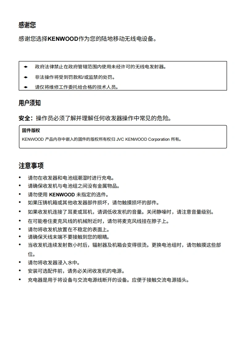 建武KenwoodTK-2406-3406操作说明书手册中文版找手册网10天前发布关注私信1.25MB23页022建武KenwoodTK-2406-3406操作说明书手册中文版此内容为付费资源,请付费后查看¥19¥21黄金会员免费钻石会员免费登录购买付费资源 第1页 / 共23页 第2页 / 共23页 第3页 / 共23页 第4页 / 共23页 第5页 / 共23页 第6页 / 共23页 第7页 / 共23页 第8页 / 共23页 第9页 / 共23页 第10页 / 共23页 试读已结束,还剩13页,您可下载完整版后进行离线阅读 THE END建武 文本预览 使用说明书KENWOODVHF FM收发机TK-2406UHF FM收发机TK-3406JVCKENWOOD Corporation©B62-2481-00(M09080706050403020100 查看更多 收起部分 喜欢就支持一下吧收藏