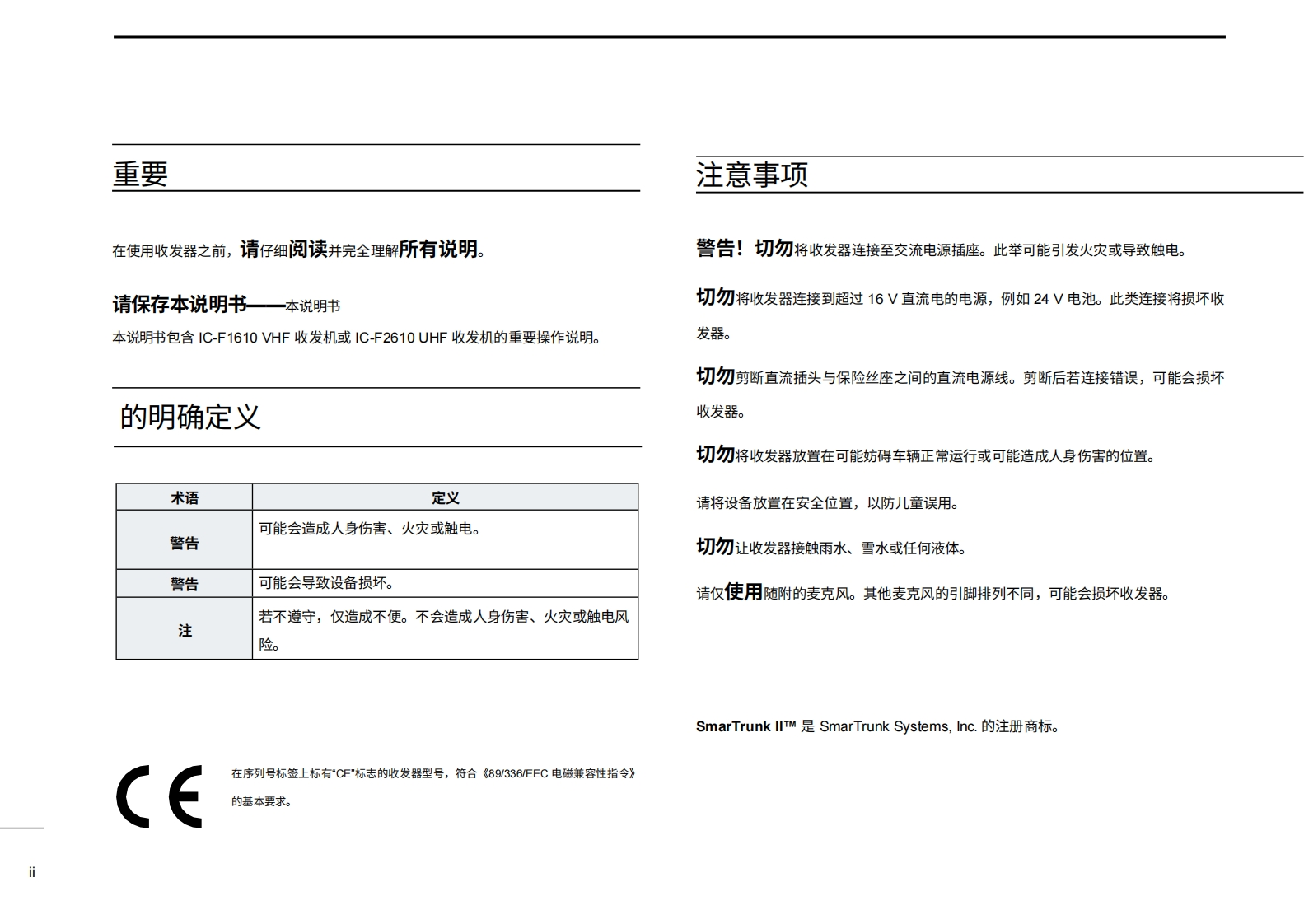 ICOM艾可慕Icom_IC-F1610_IC-F2610_user操作说明书手册_199820260331中文版找手册网11天前发布关注私信2.04MB25页042ICOM艾可慕Icom_IC-F1610_IC-F2610_user操作说明书手册_199820260331中文版此内容为付费资源,请付费后查看¥19¥21黄金会员免费钻石会员免费登录购买付费资源 第1页 / 共25页 第2页 / 共25页 第3页 / 共25页 第4页 / 共25页 第5页 / 共25页 第6页 / 共25页 第7页 / 共25页 第8页 / 共25页 第9页 / 共25页 第10页 / 共25页 试读已结束,还剩15页,您可下载完整版后进行离线阅读 THE END艾可慕 文本预览 comSmarTrunkl"utibl9使用说明书VHF收发机iF1610UHF收发机i=261O桶ulti FunctionIcom "F"Mobile8Icom Inc. 查看更多 收起部分 喜欢就支持一下吧收藏