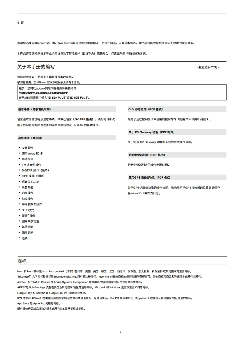 Ic用户使用操作说明书手册_ID-52PLUS_用户使用操作说明书手册20260331中文版找手册网10天前发布关注私信23.10MB270页028Ic用户使用操作说明书手册_ID-52PLUS_用户使用操作说明书手册20260331中文版此内容为付费资源,请付费后查看¥19¥21黄金会员免费钻石会员免费登录购买付费资源 第1页 / 共270页 第2页 / 共270页 第3页 / 共270页 第4页 / 共270页 第5页 / 共270页 第6页 / 共270页 第7页 / 共270页 第8页 / 共270页 第9页 / 共270页 第10页 / 共270页 试读已结束,还剩260页,您可下载完整版后进行离线阅读 THE END艾可慕 文本预览 @cOM高级手册VHF/UHF收发机1安装配件ID-52APLUS2使用microSD卡1D-52EPLUS3电池充电4FM收音机操作5D-STAR操作(进阶)6GPS操作(G进阶】7语音发射功能8录音功能9存储器操作10扫描操作11中维器和双工操作本手阶场丁离圾功策和操作用。12设置模式有关注意事物基操作,请参喇收发料附的《基木于册》。13蓝牙操作14图片共享功能15其他功能16更新固件17选项Icom Inc. 查看更多 收起部分 喜欢就支持一下吧收藏