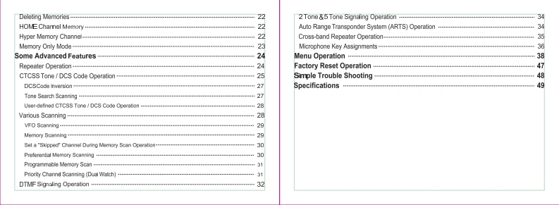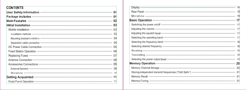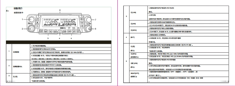 TH-9800 User ManualThank you very much for choosing the TH-9800 quad band mobile transceiver.The TH-0300 provides you wih a reliable,dear and emTicient communicasons service which inenhanced by an ergonomic design and intutive user controlsInherently reliable you can depend on your TH-9B00 no matter where you are in the harshMref作单nrlThe TH-9800 is cost-ellective muli-funcsonal and wil meet ll of your HF/VHF/UHF bandcommunication needs no matter what the situation.For a full explanation of the mamy features,tunctons and the care tree maintenance of yournew mobile pleage take the time to read the user manual enclosed with your transceiver