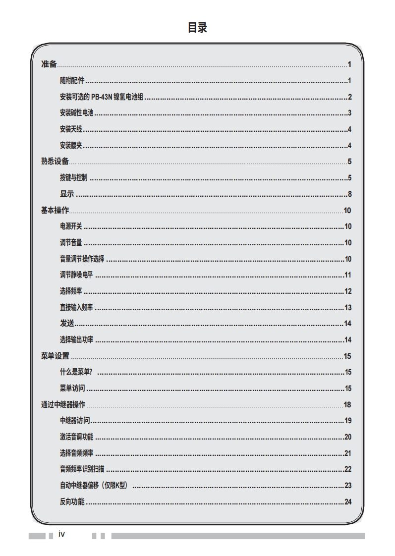 建武th255a_使用说明书手册中文版找手册网10天前发布关注私信2.11MB91页047建武th255a_使用说明书手册中文版此内容为付费资源,请付费后查看¥19¥21黄金会员免费钻石会员免费登录购买付费资源 第1页 / 共91页 第2页 / 共91页 第3页 / 共91页 第4页 / 共91页 第5页 / 共91页 第6页 / 共91页 第7页 / 共91页 第8页 / 共91页 第9页 / 共91页 第10页 / 共91页 试读已结束,还剩81页,您可下载完整版后进行离线阅读 THE END建武 文本预览 使用说明书KENWOODFM TRANSCEIVERoo00回©回。ENT144 MHz FM收发机TH-255AKenwood Corporation©B62-1981-00(K,M009080706050403020100 查看更多 收起部分 喜欢就支持一下吧收藏