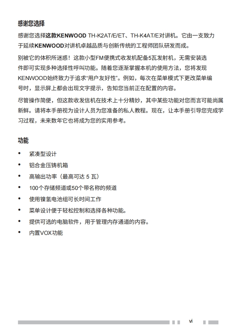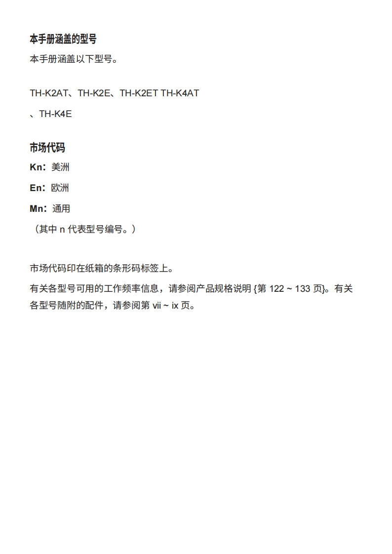 建武thk2-k4-series_使用说明书手册中文版找手册网10天前发布关注私信3.93MB159页024建武thk2-k4-series_使用说明书手册中文版此内容为付费资源,请付费后查看¥19¥21黄金会员免费钻石会员免费登录购买付费资源 第1页 / 共159页 第2页 / 共159页 第3页 / 共159页 第4页 / 共159页 第5页 / 共159页 第6页 / 共159页 第7页 / 共159页 第8页 / 共159页 第9页 / 共159页 第10页 / 共159页 试读已结束,还剩149页,您可下载完整版后进行离线阅读 THE END建武 文本预览 使用说明书KENWOO欢阳r期144 MHz FM收发机TH-K2ATTH-K2E TH-K2ET430 MHz FM收发机TH-K4ATTH-K4E©B62-1696-00(K、K2、E、E3、M、M2)090807K99RCORPORATION 查看更多 收起部分 喜欢就支持一下吧收藏